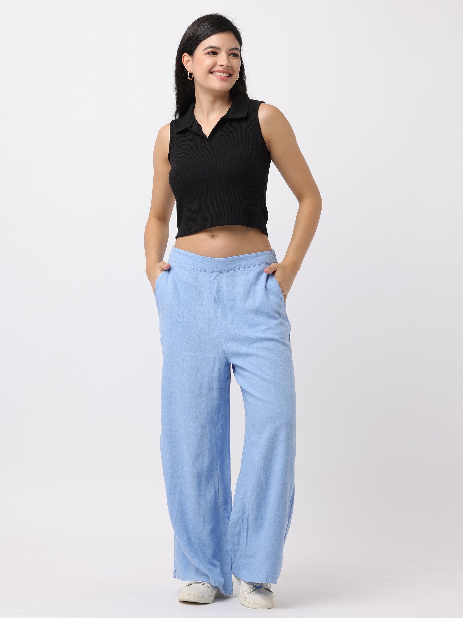 Women Blue Regular Fit Pants with Elastic Waist