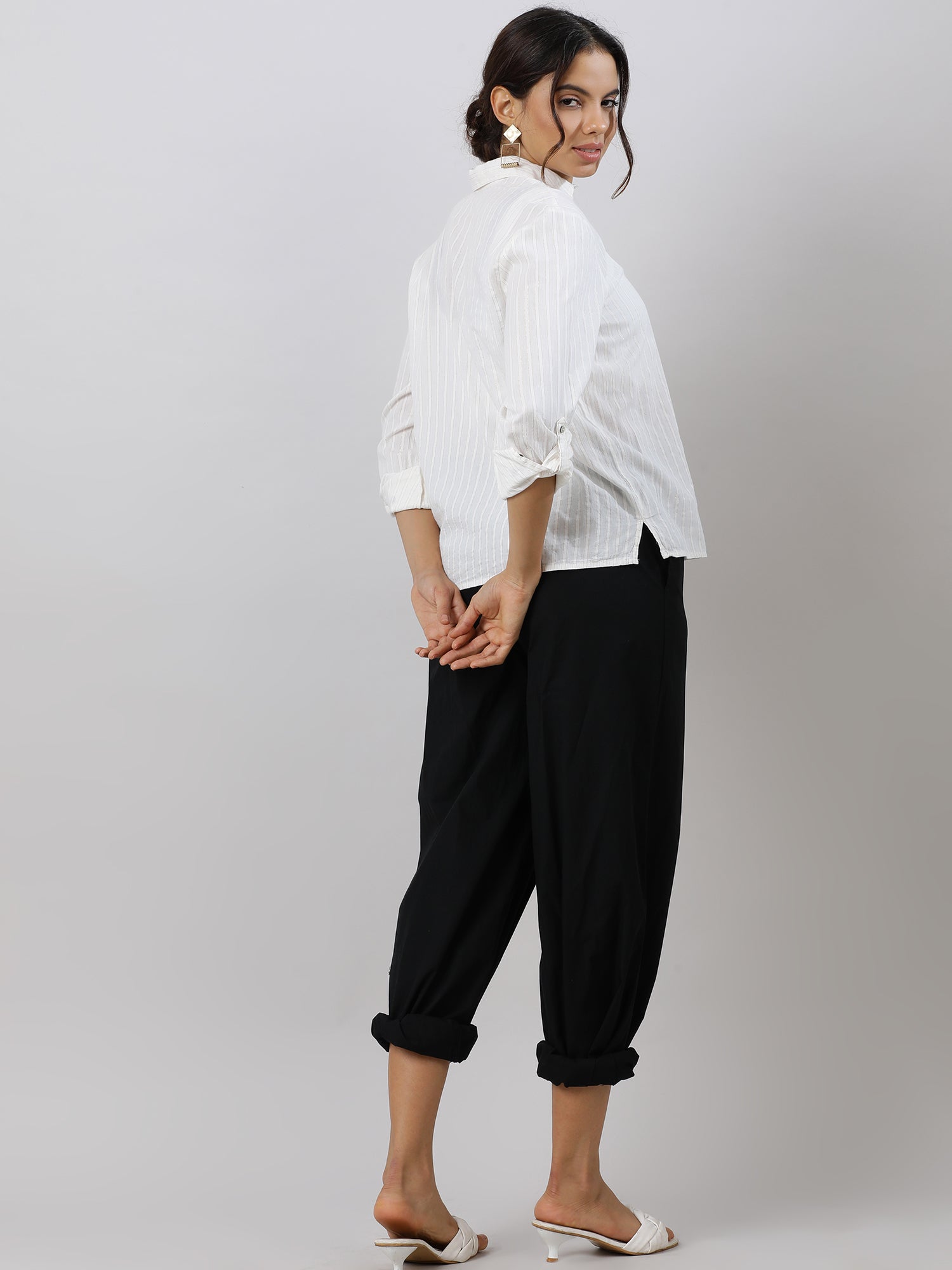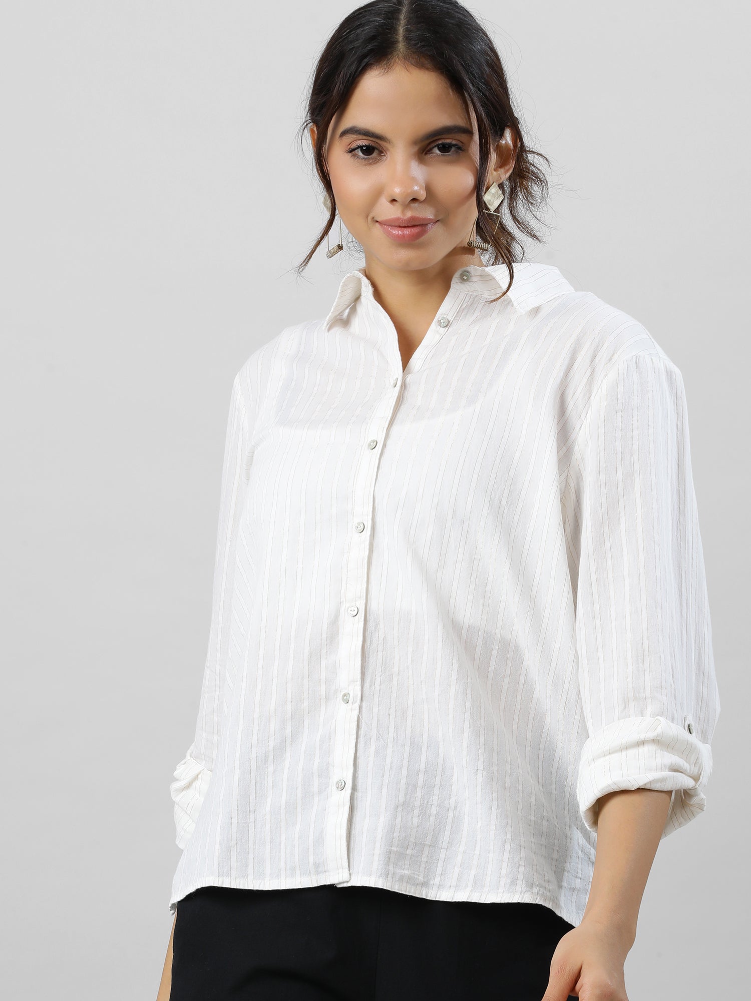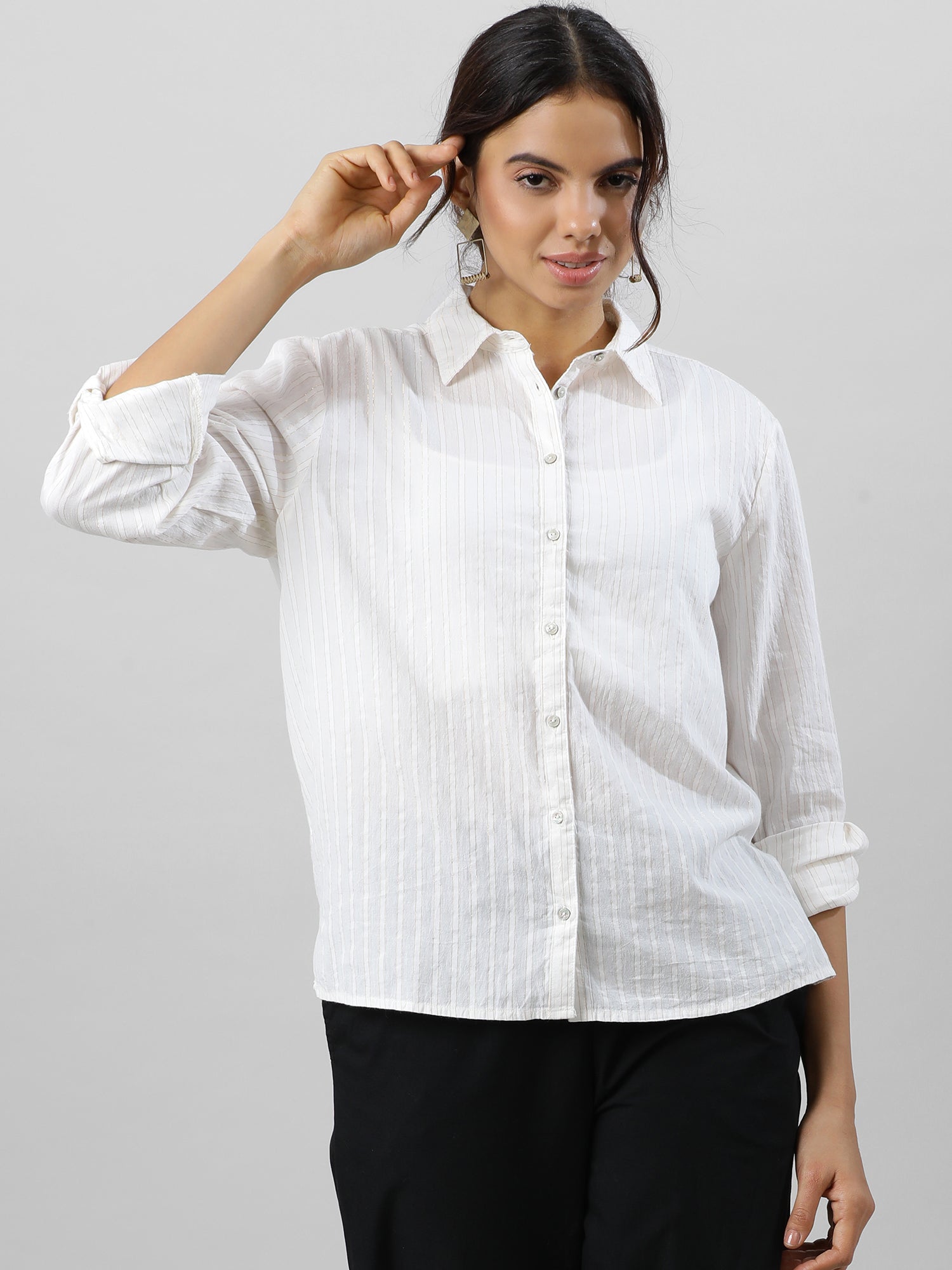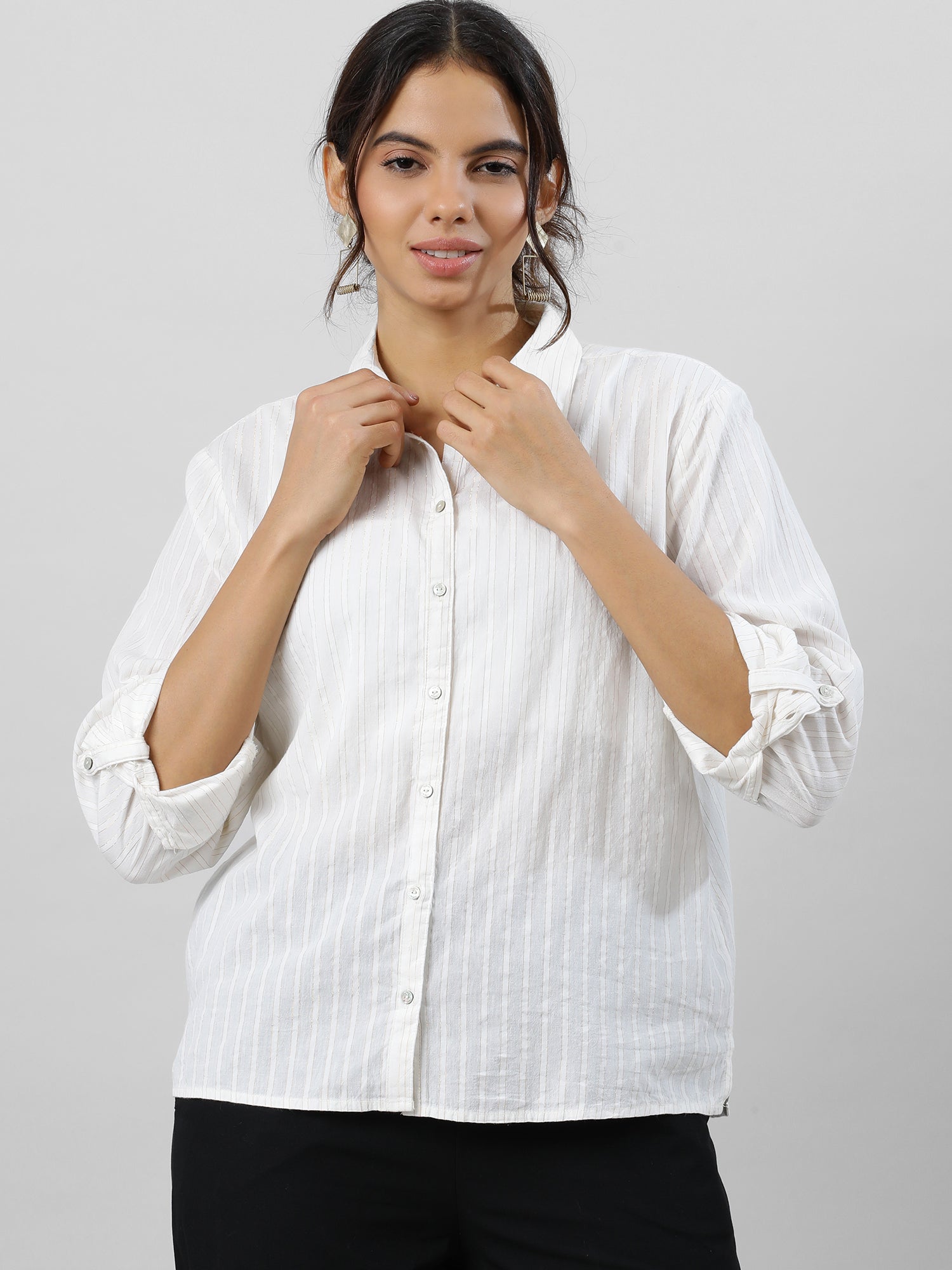 Unleash your golden vibes with our Stand Collar Shirt featuring stylish stripes. Crafted from exceptional fabric, it's your ticket to global glam