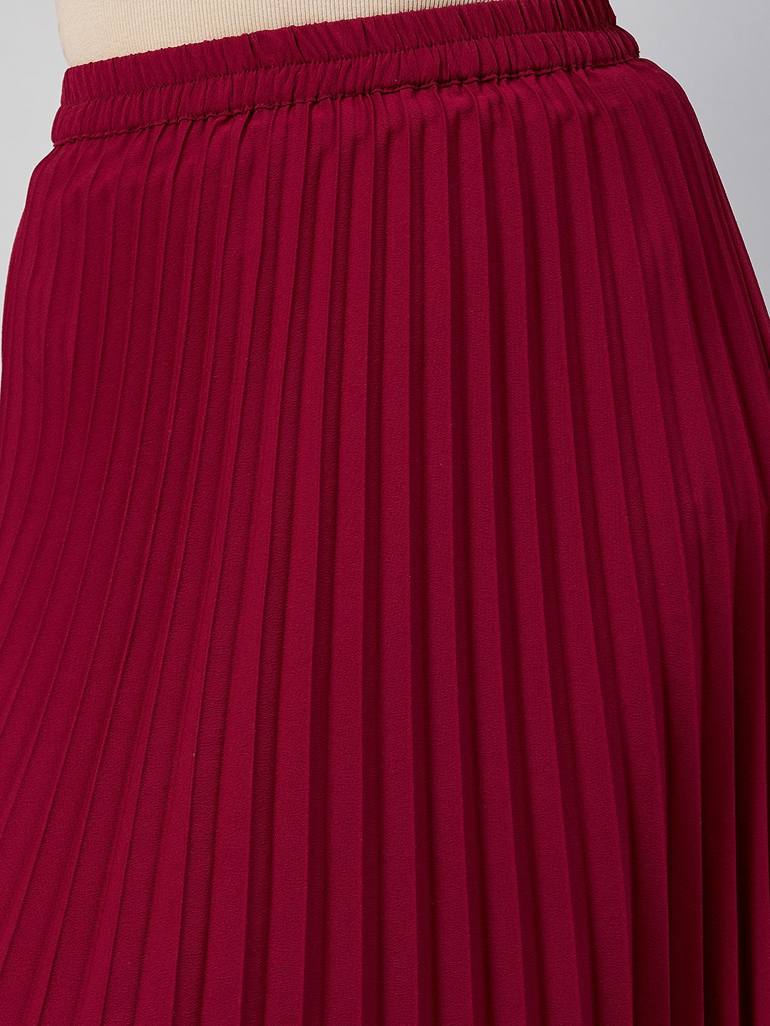 Maroon Solid Pleated A-Line Midi Skirt