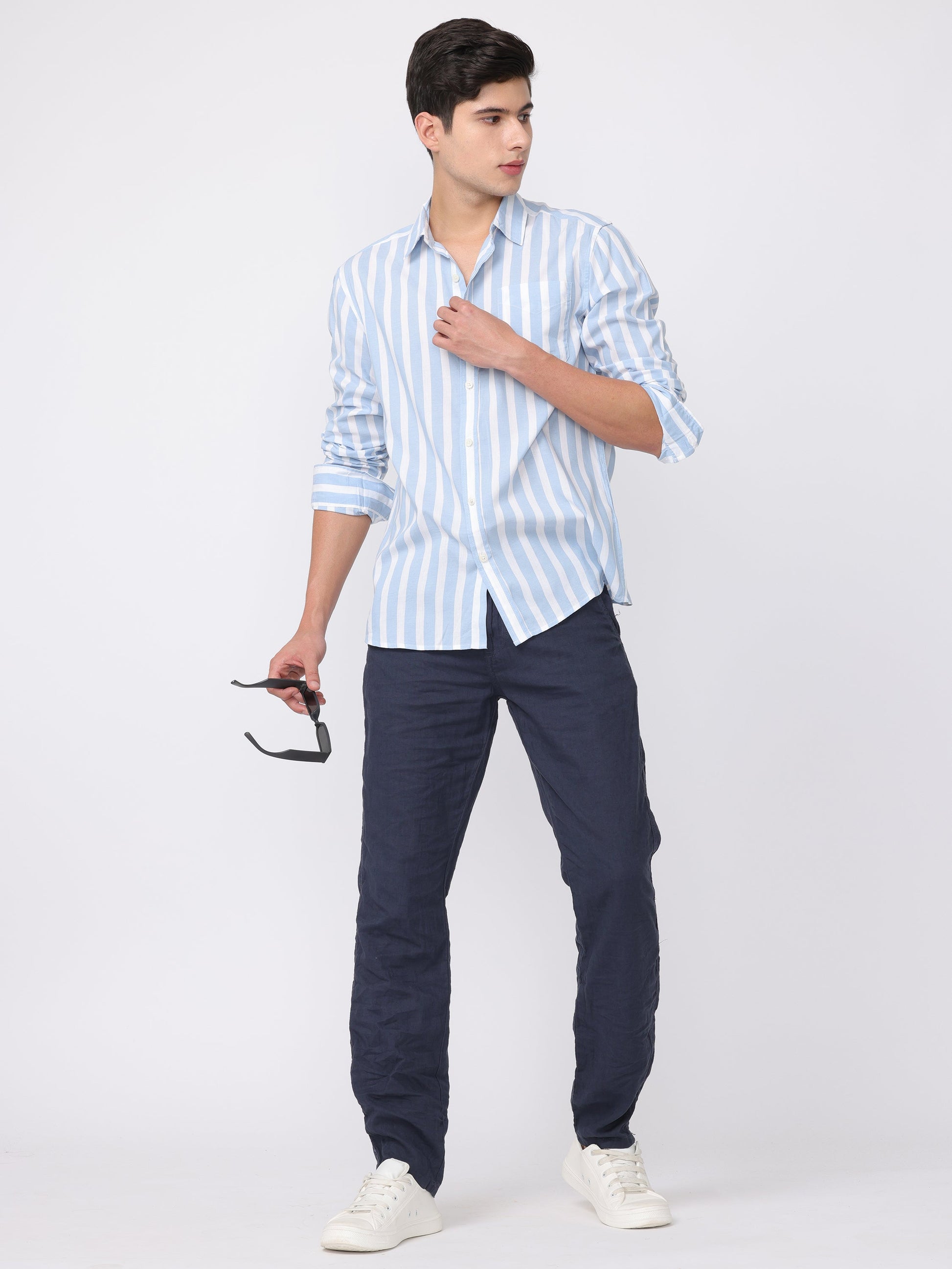 This Men Blue Regular Fit Striped Shirt features a textured fabric with a stylish striped pattern, offering both comfort and versatility. With full sleeves, a shirt collar, and a front pocket, it’s perfect for casual and semi-formal occasions.