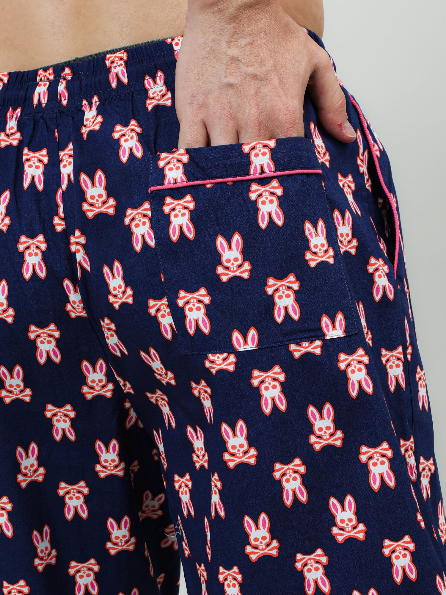 Transform your downtime look with our trendy navy blue graphic print pants. Fashioned from 100% cotton, they deliver unparalleled style and comfort.