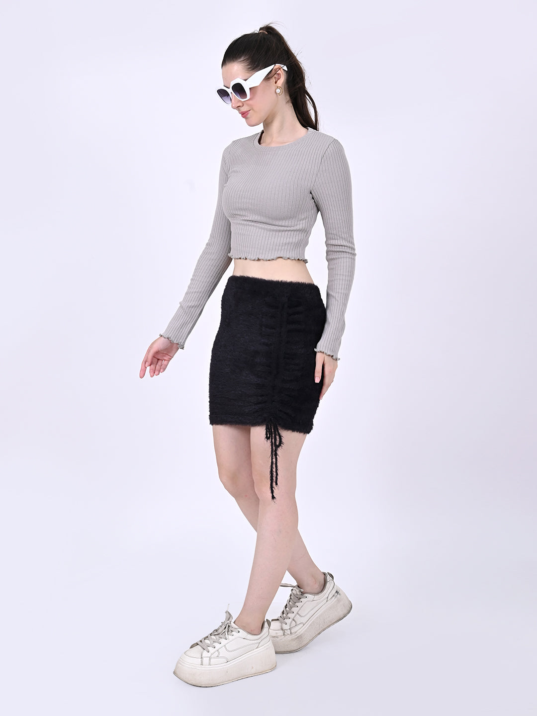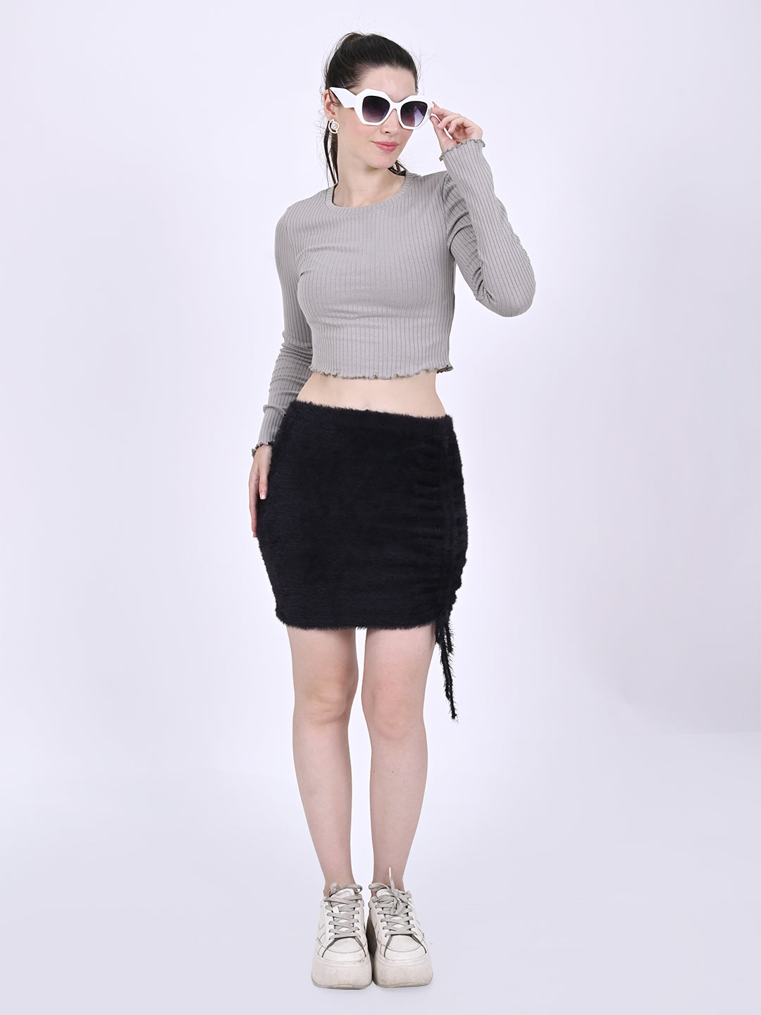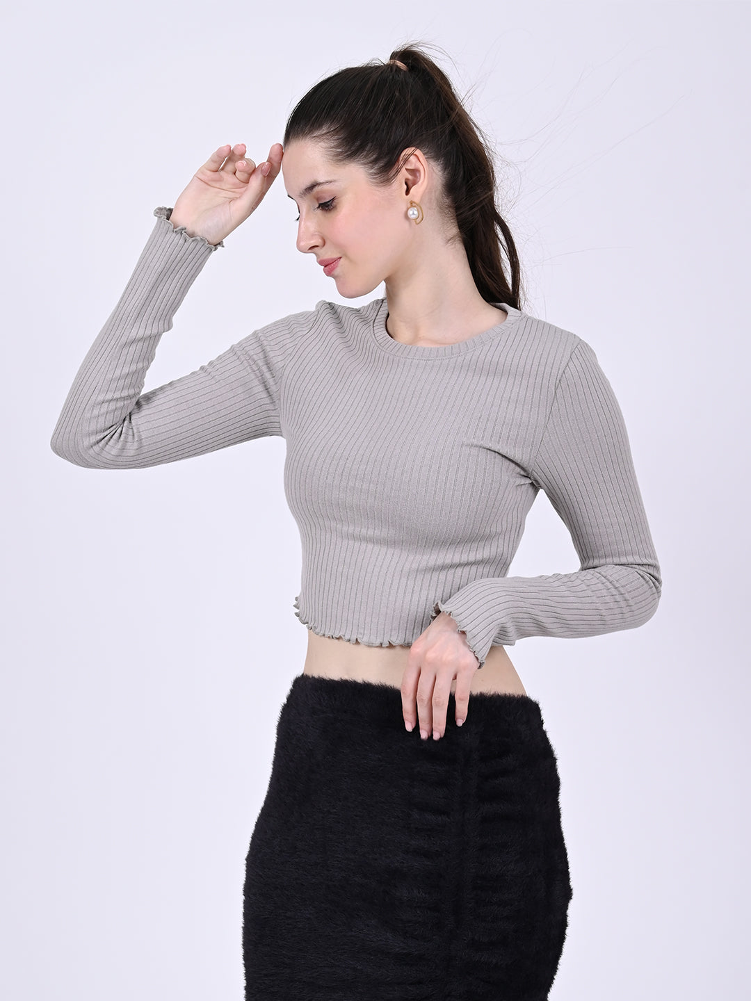 Women Grey Ribbed Crop Top