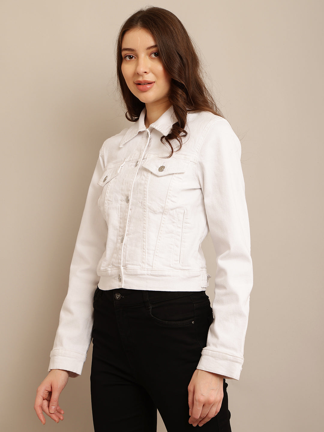 This solid jacket features a shirt collar, button closure, and long sleeves, along with 2 front pockets and 2 side pockets for added convenience. Crafted from 98% cotton and 2%.