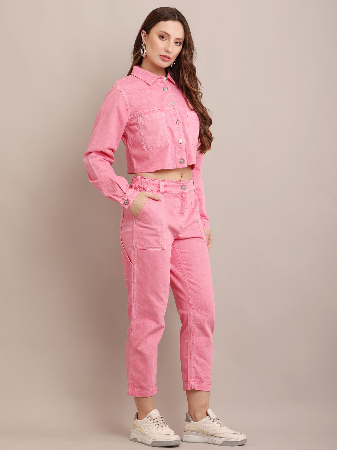 Women’s Cotton Full Sleeve Jacket with Pant Pink Cord Set Stylish , Pink, Cotton, Shirt Collar, Full Sleeve, Co-Ord Sets