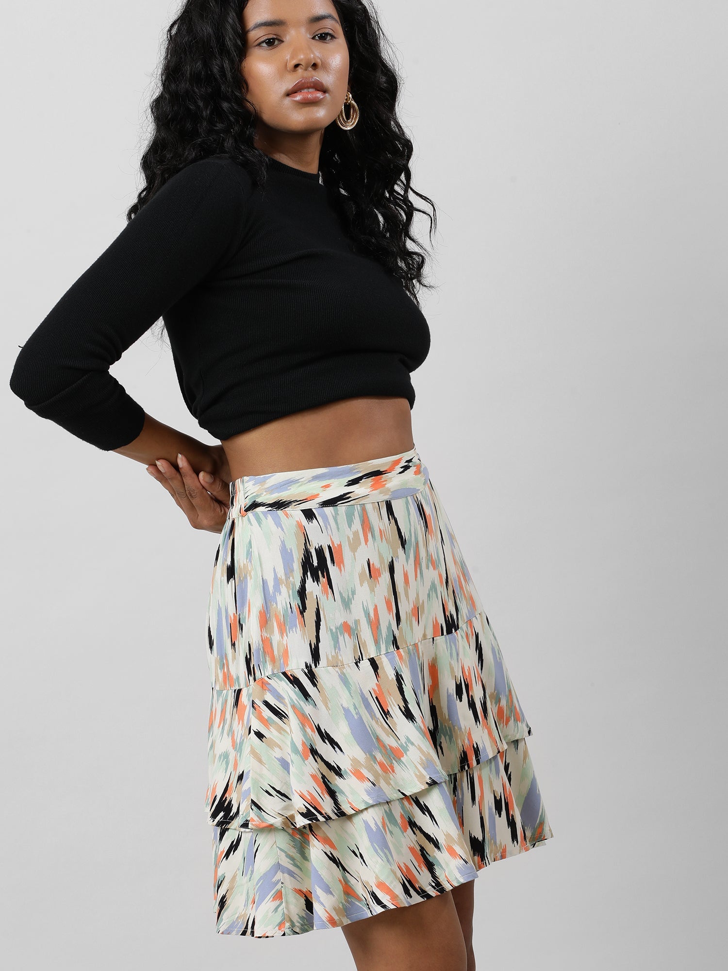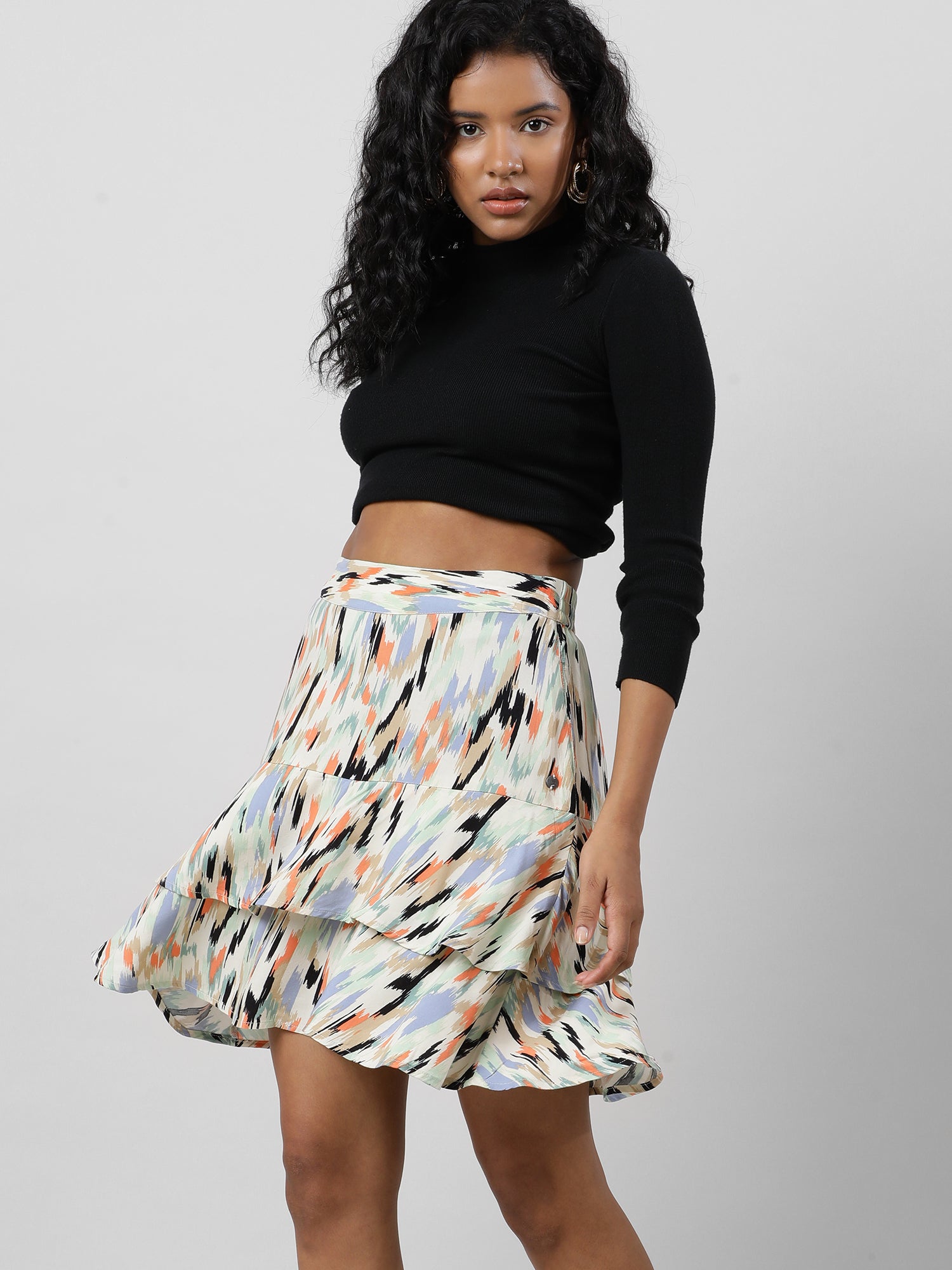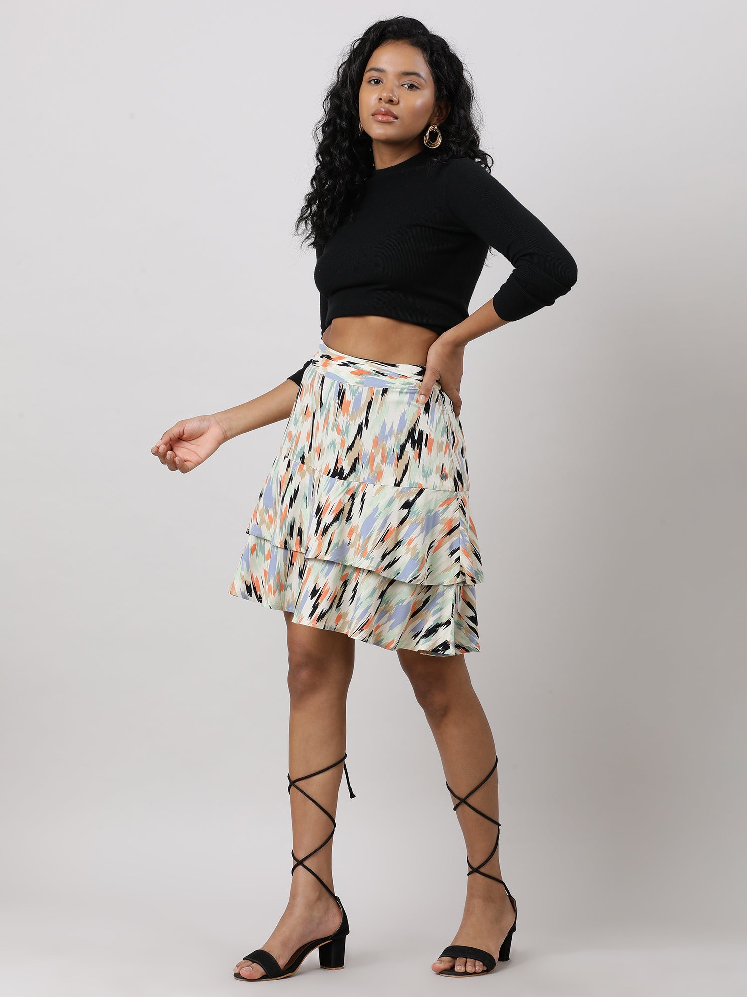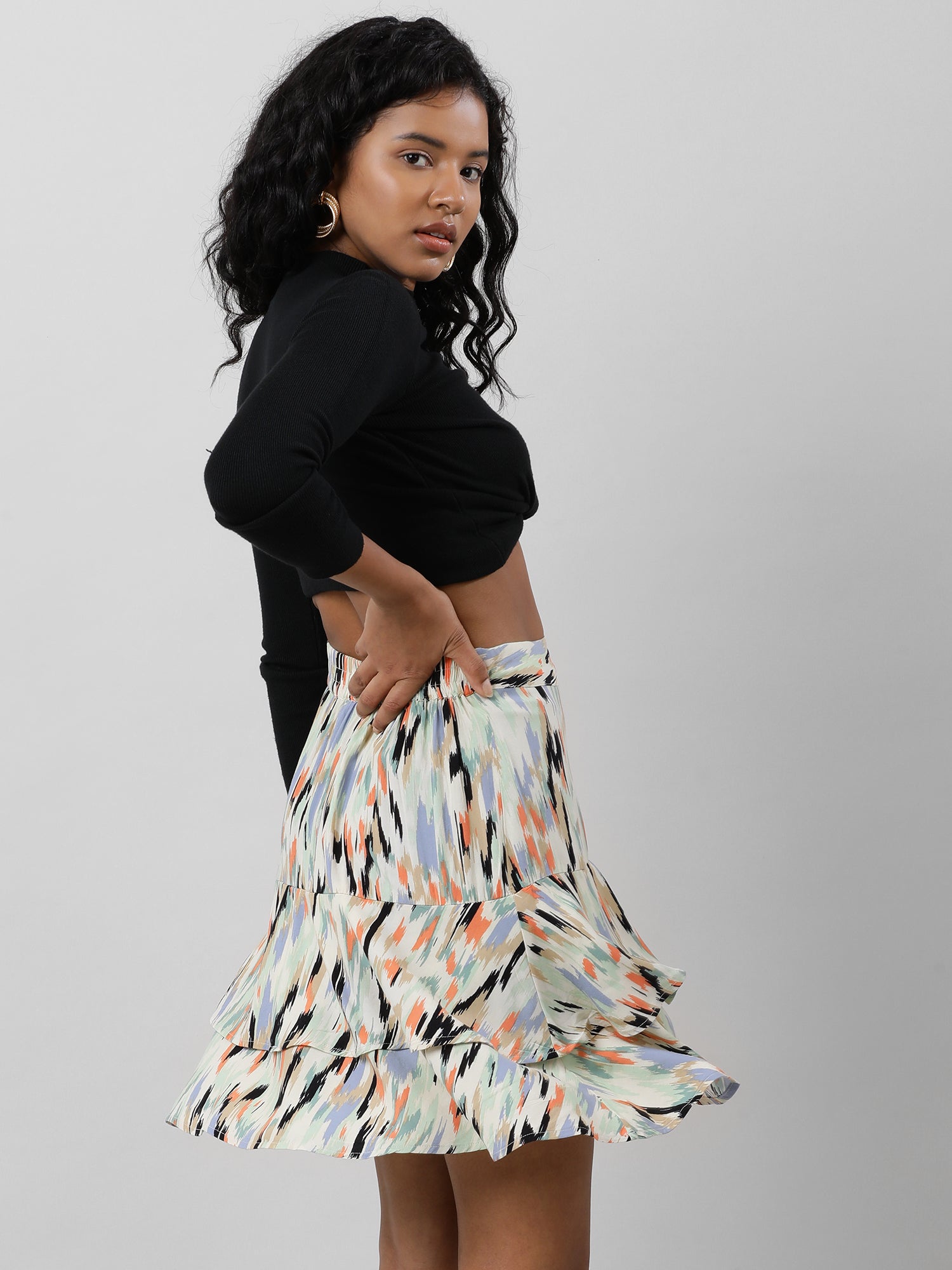 Unleash Your Playful Side with the Mesmerizing Pastel Abstract Printed Skirt!