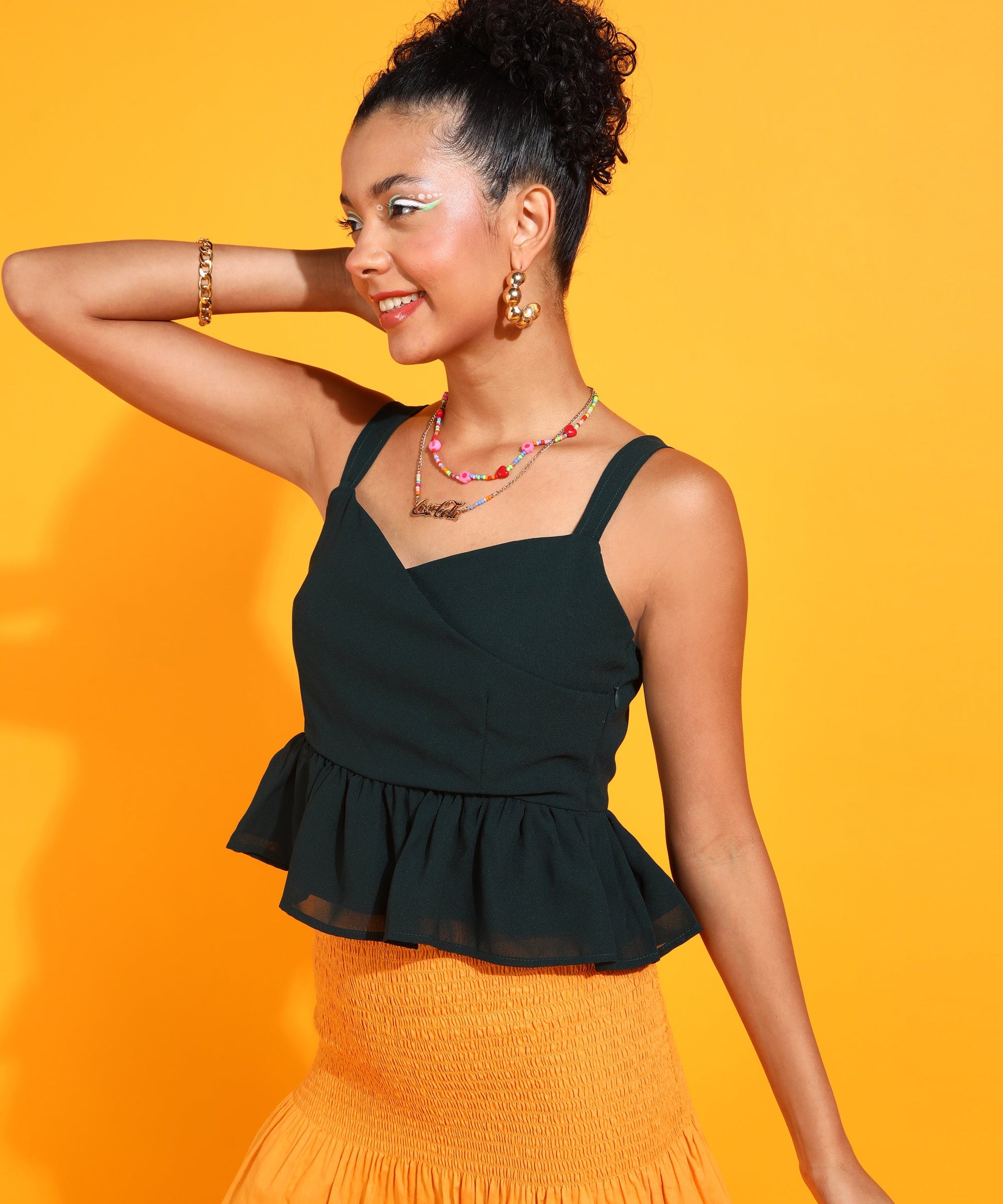 Women Green Neck Solid Peplum Top