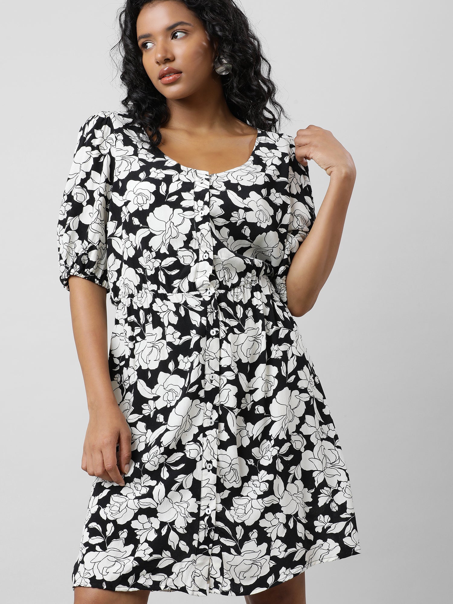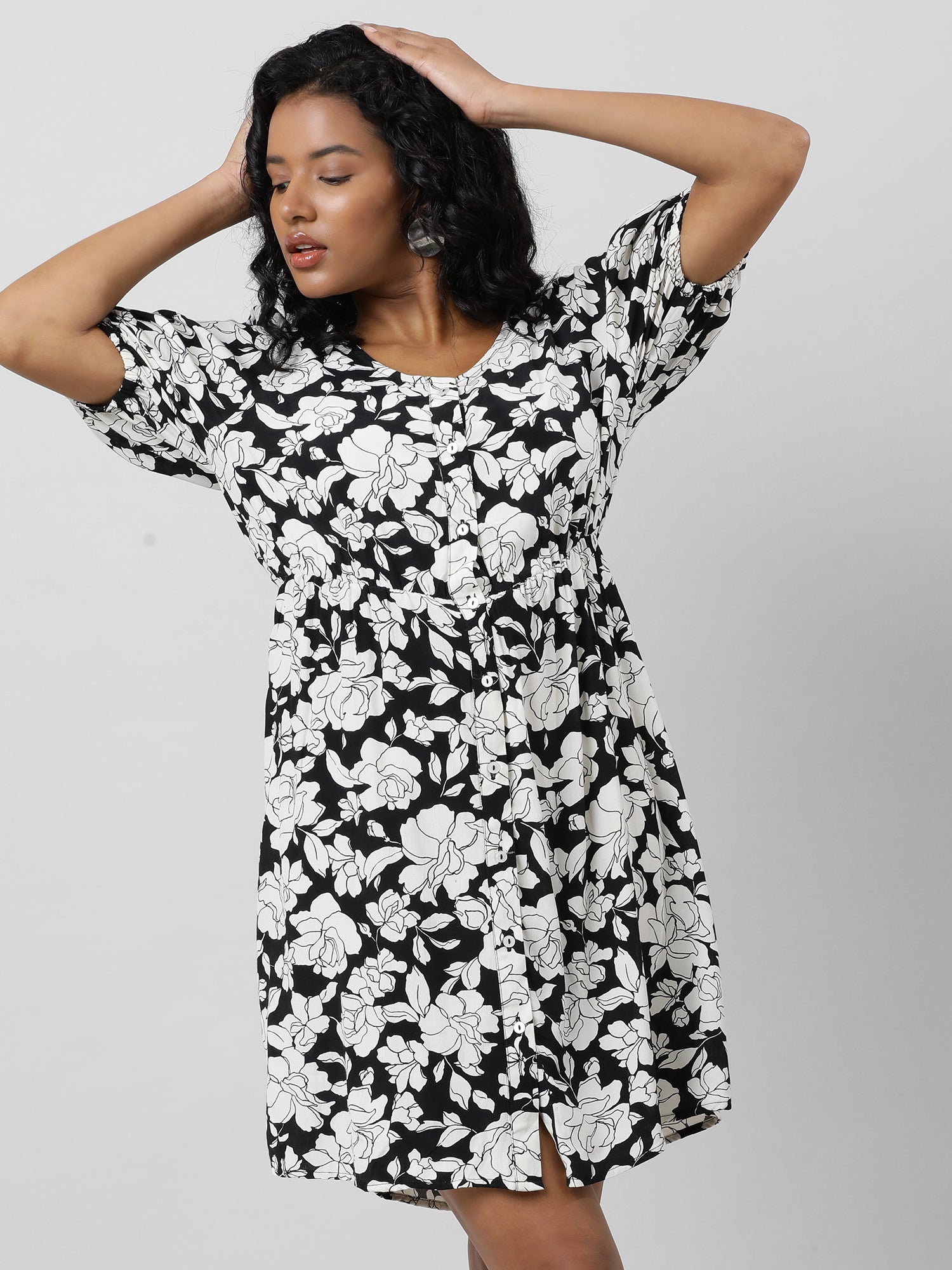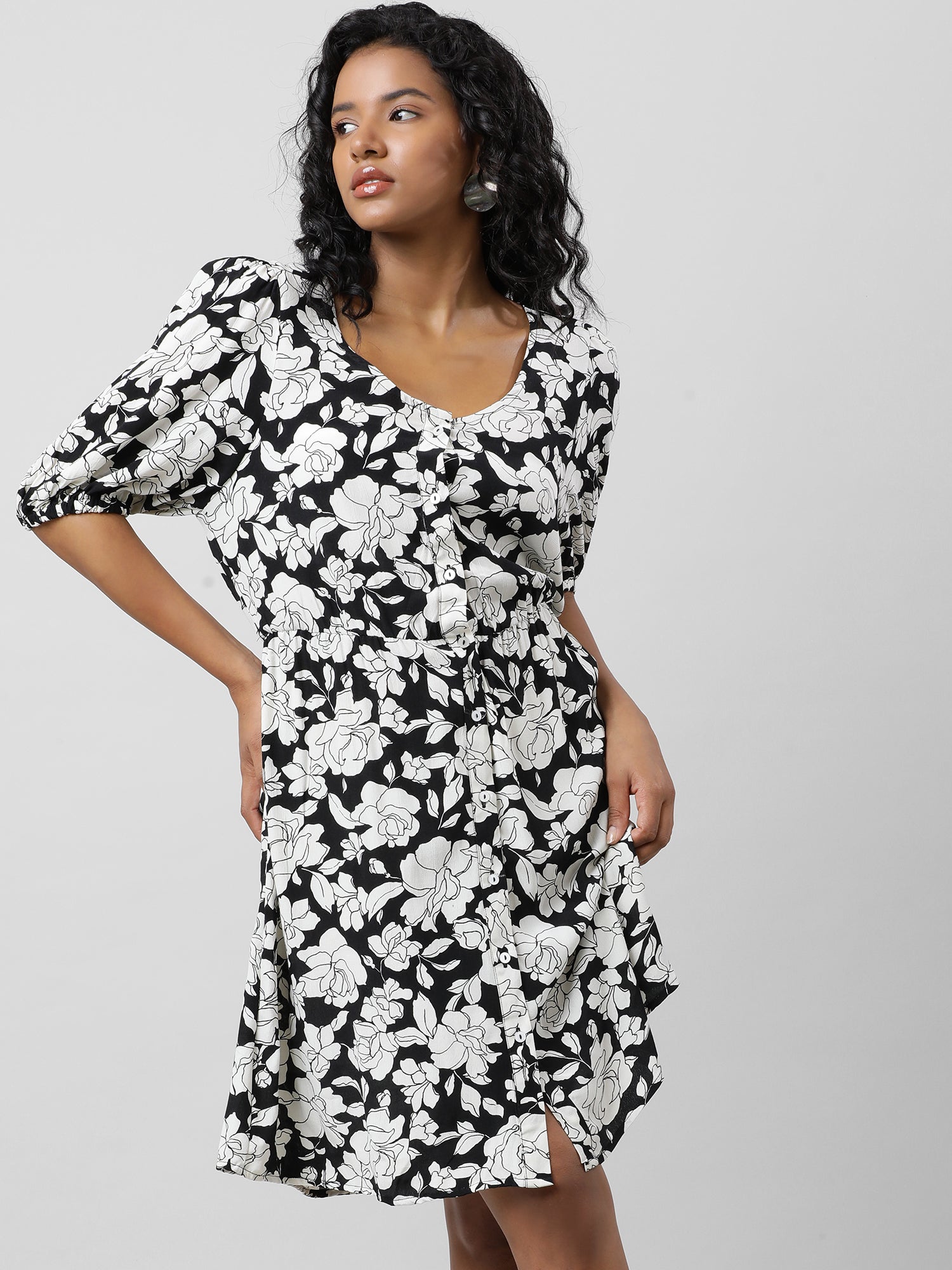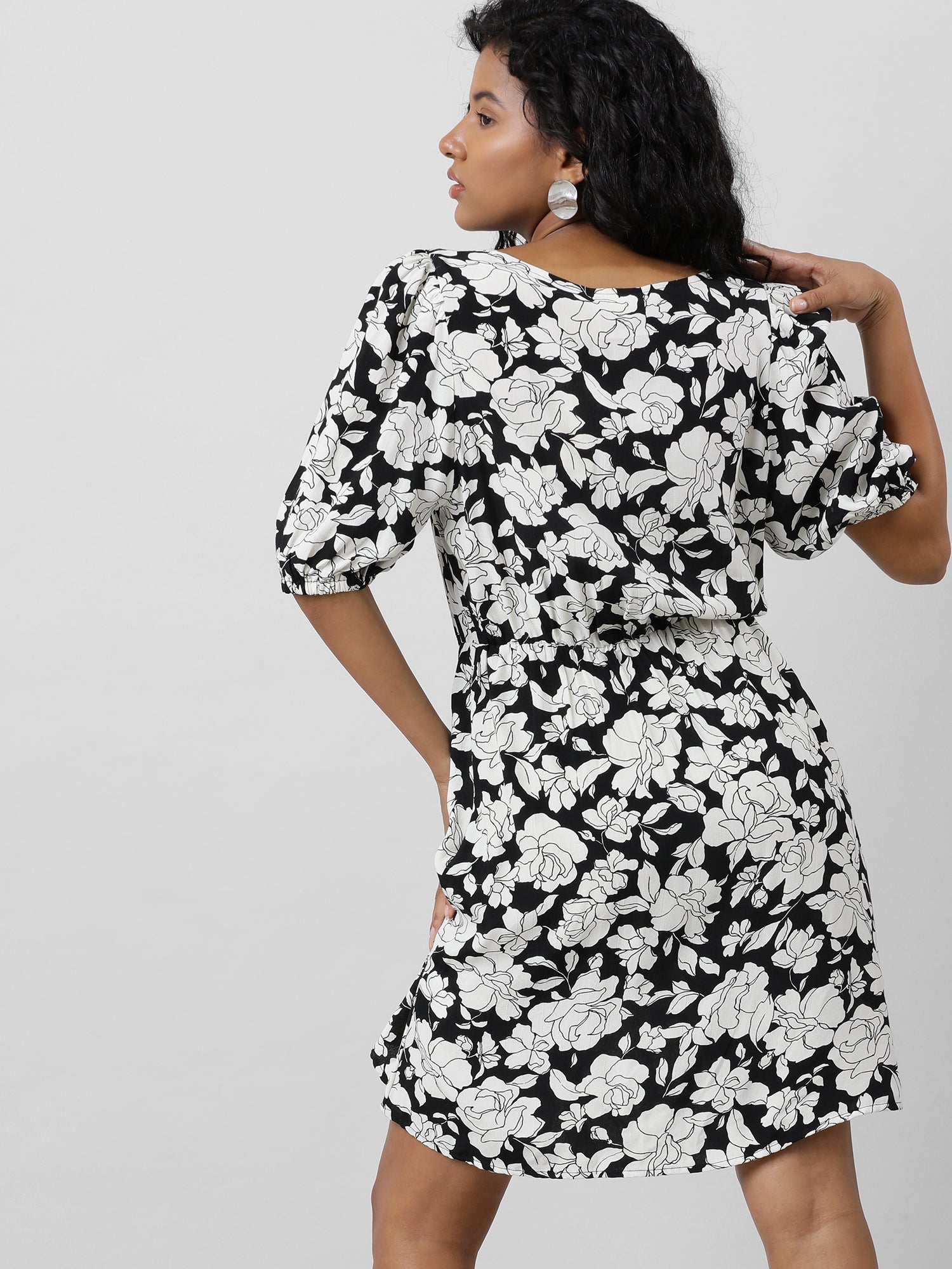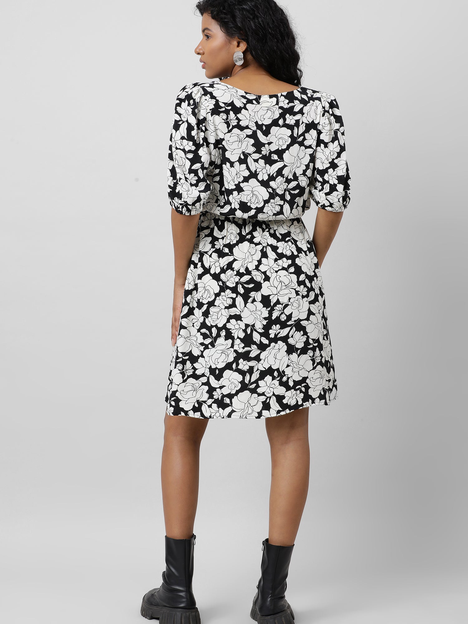 Retro Black And White Floral Dress