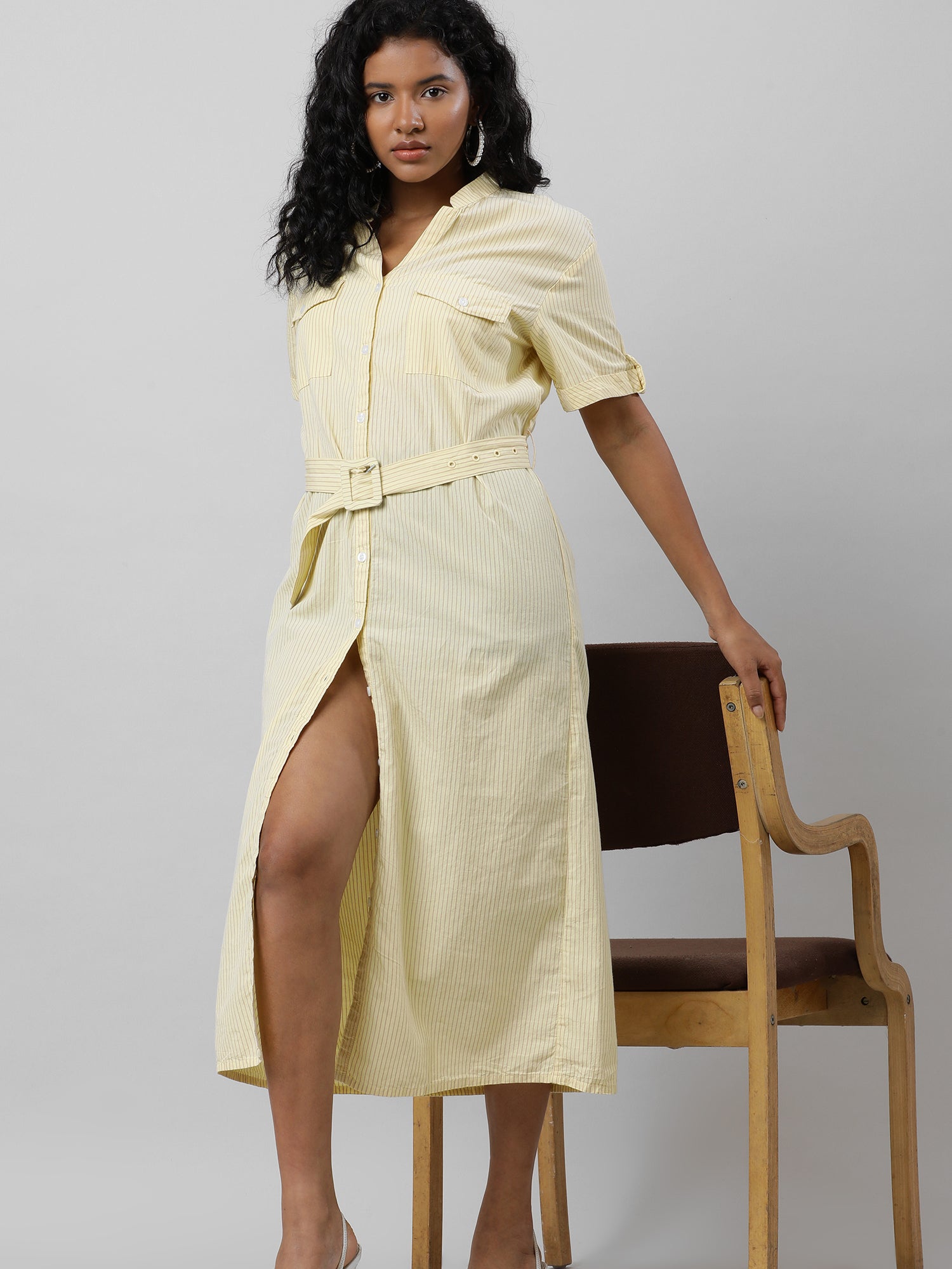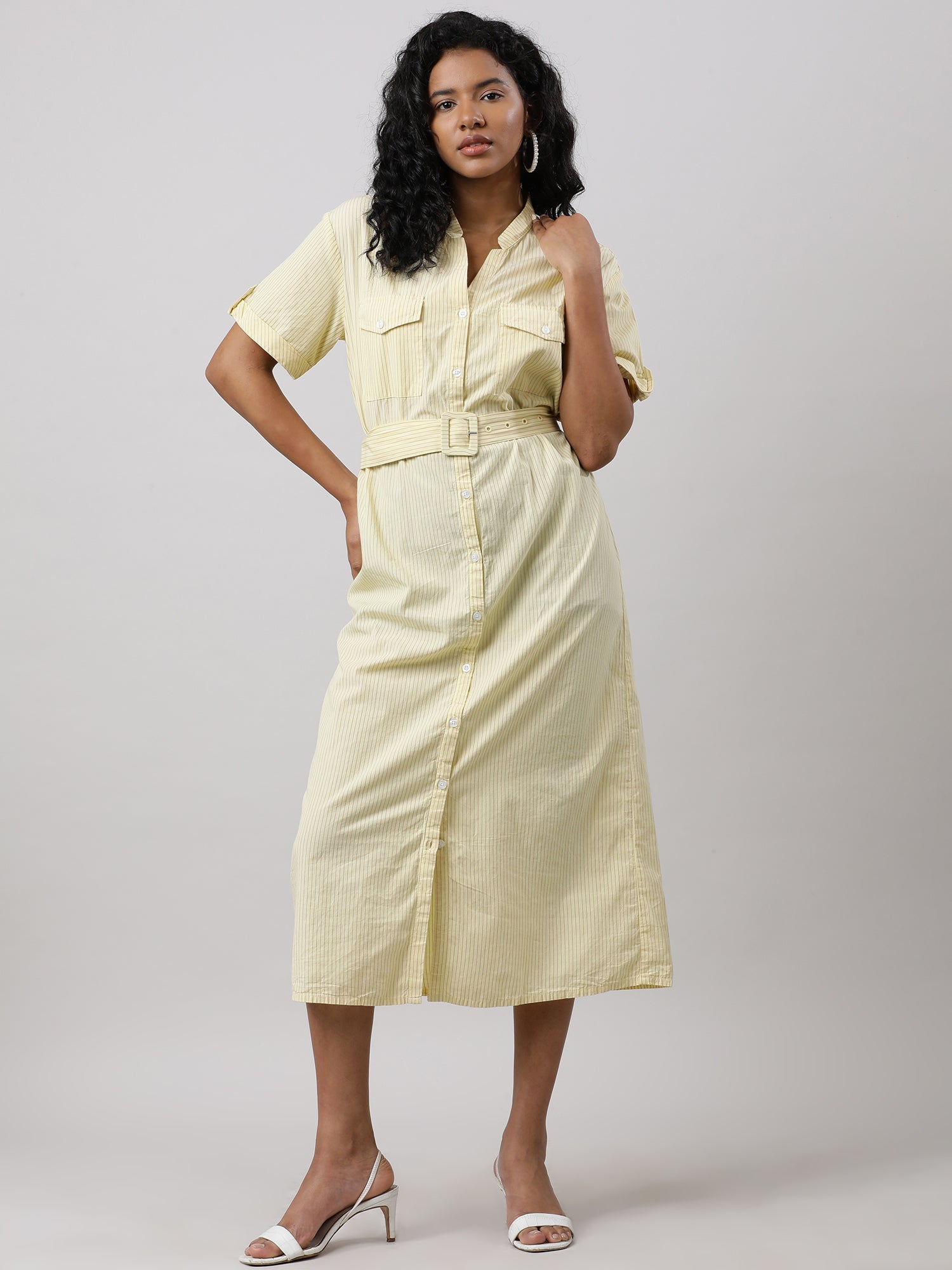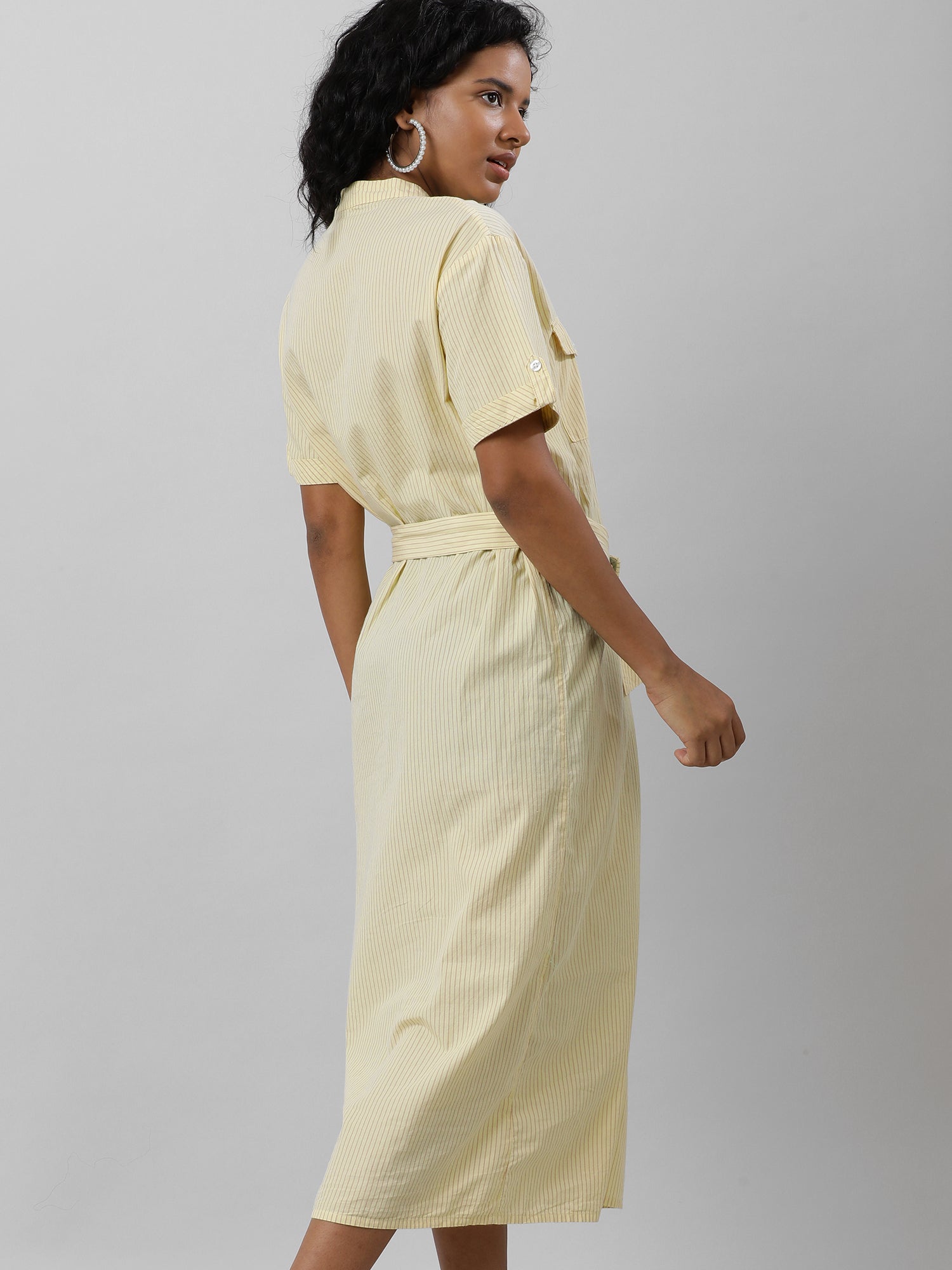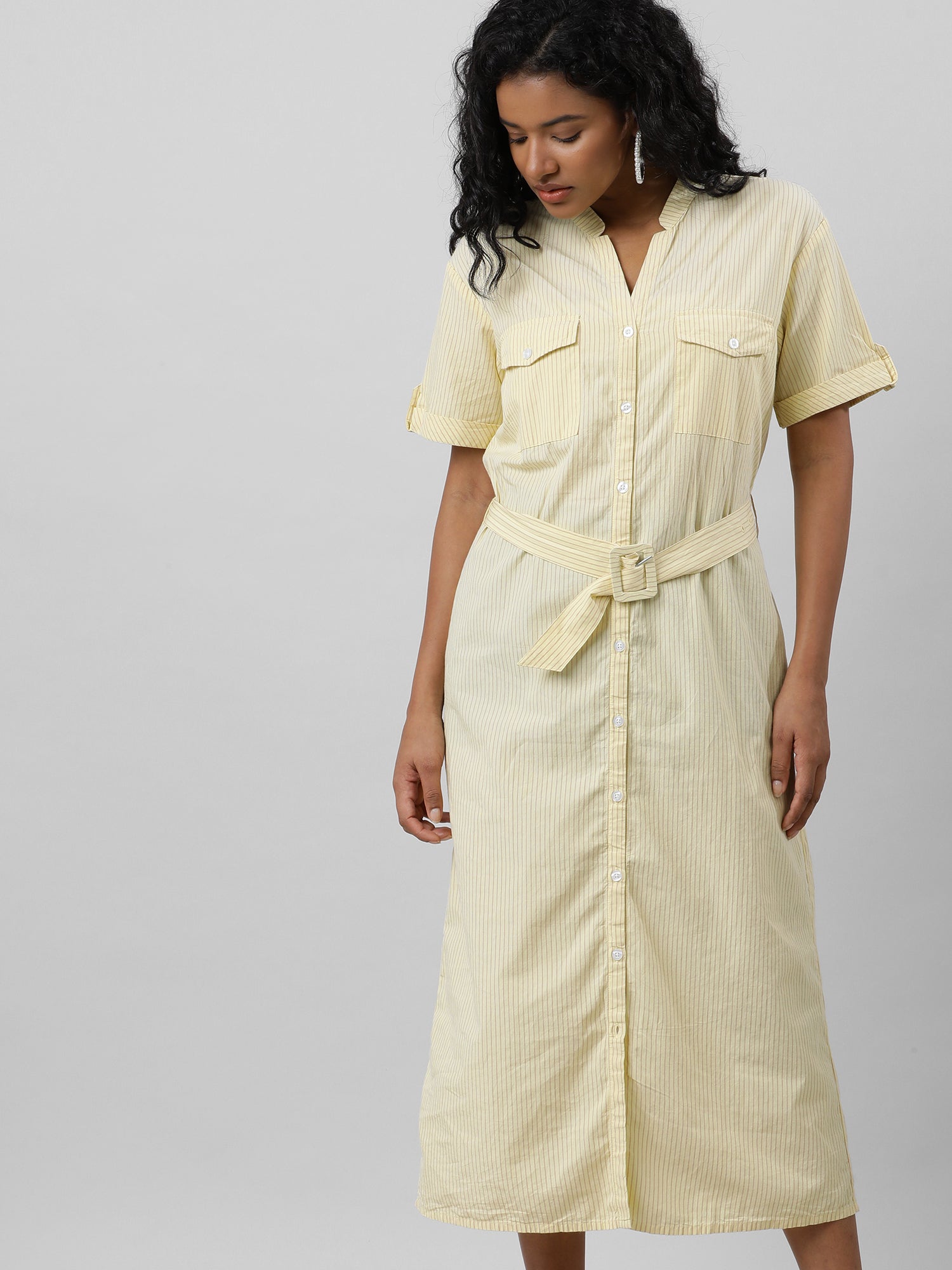 The Lemonade Dream dress boasts a flattering V-neck and trendy half sleeves, perfect for a summer day.