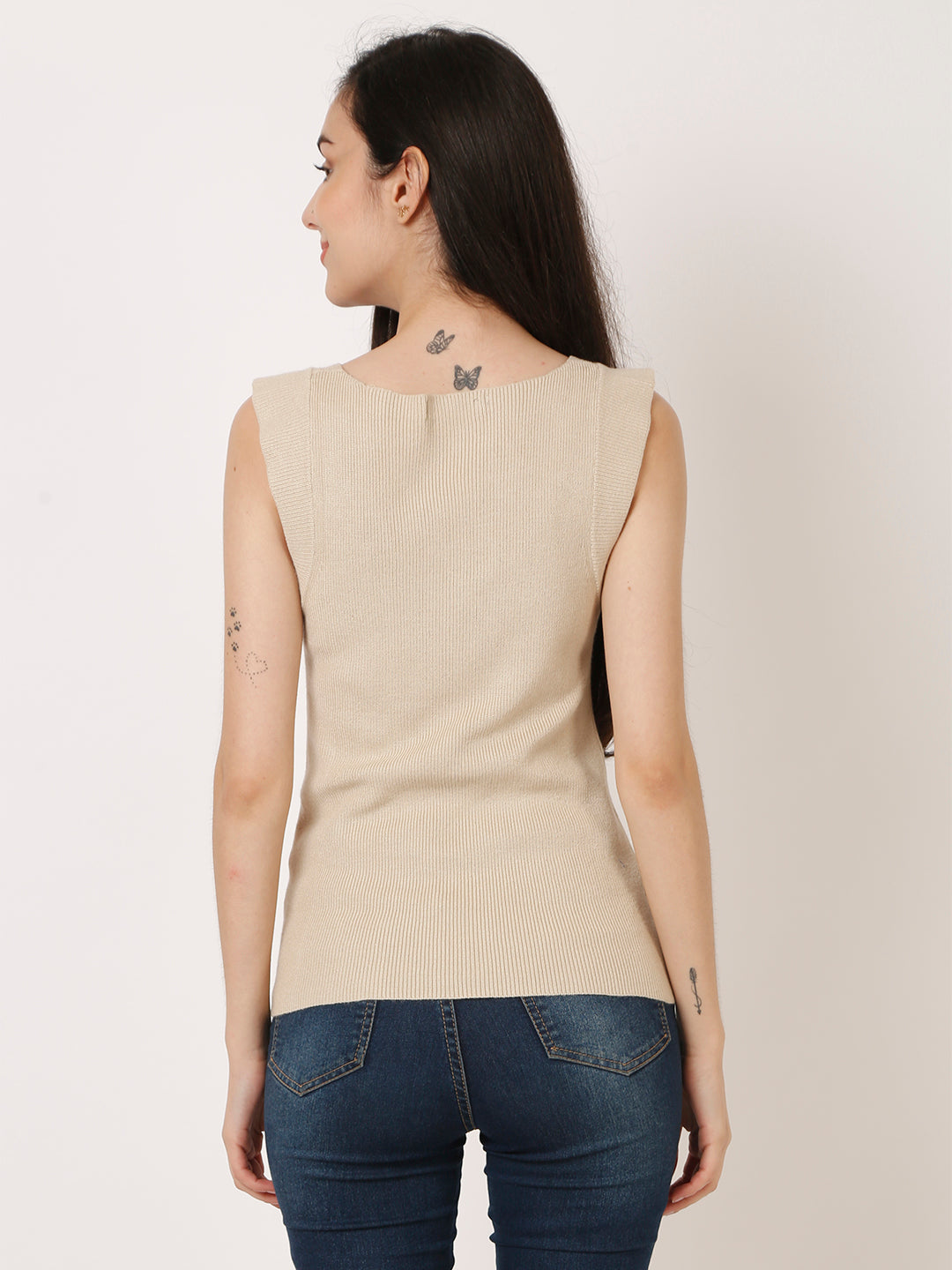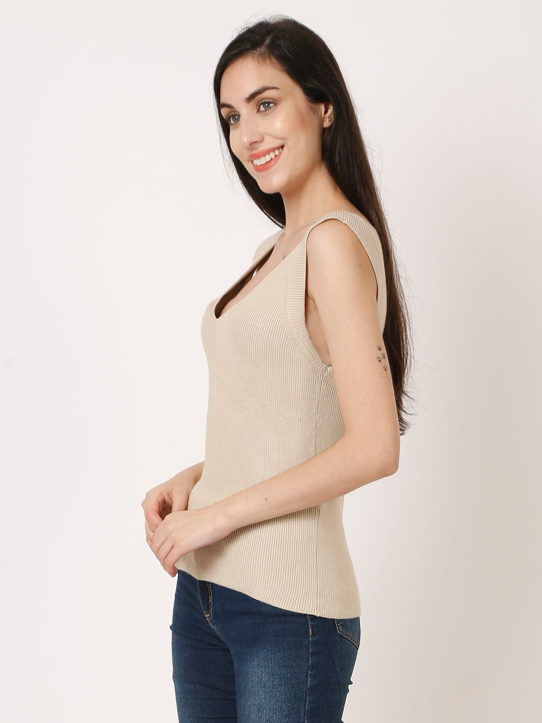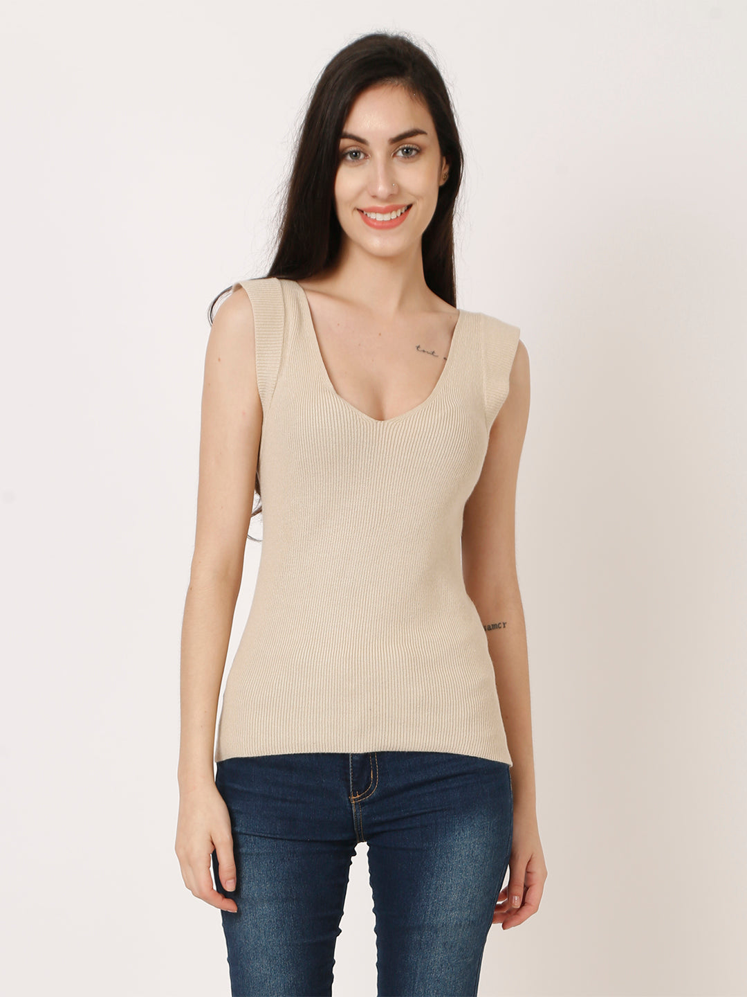 Exude grace in this classy slim fit beige top that is versatile to style.