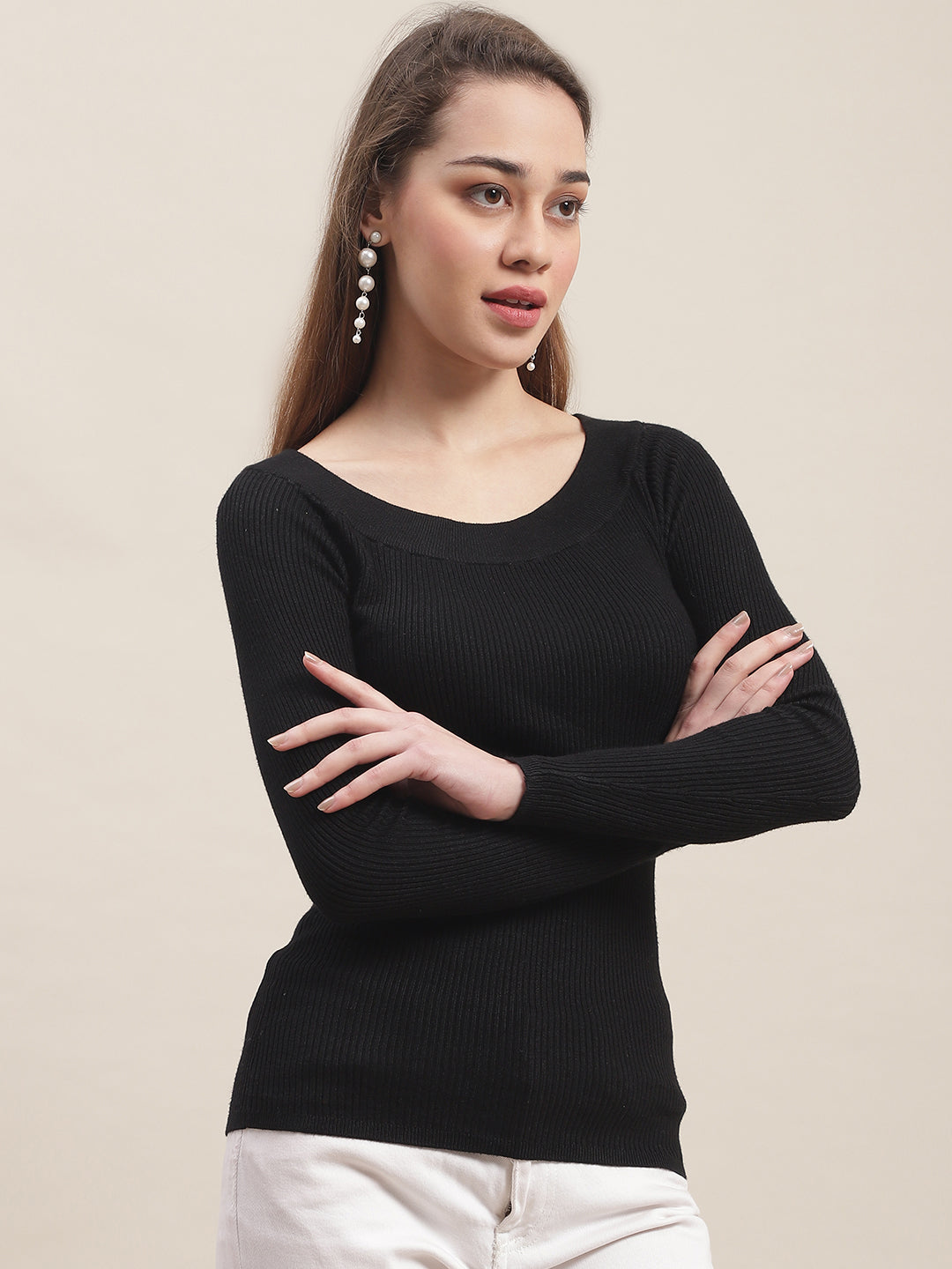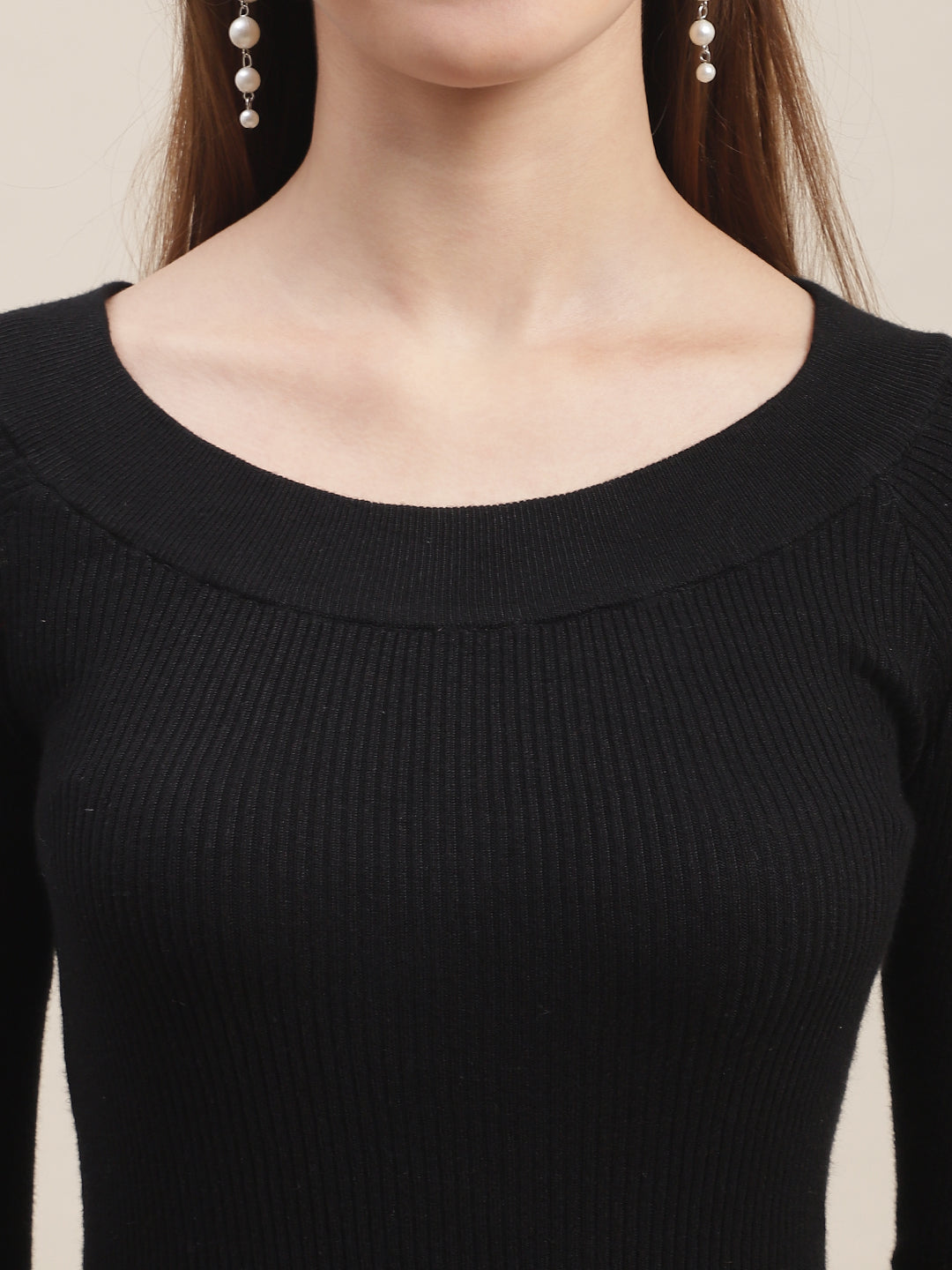 Perfect look for your daily regular fashion in this black boat-neck top.