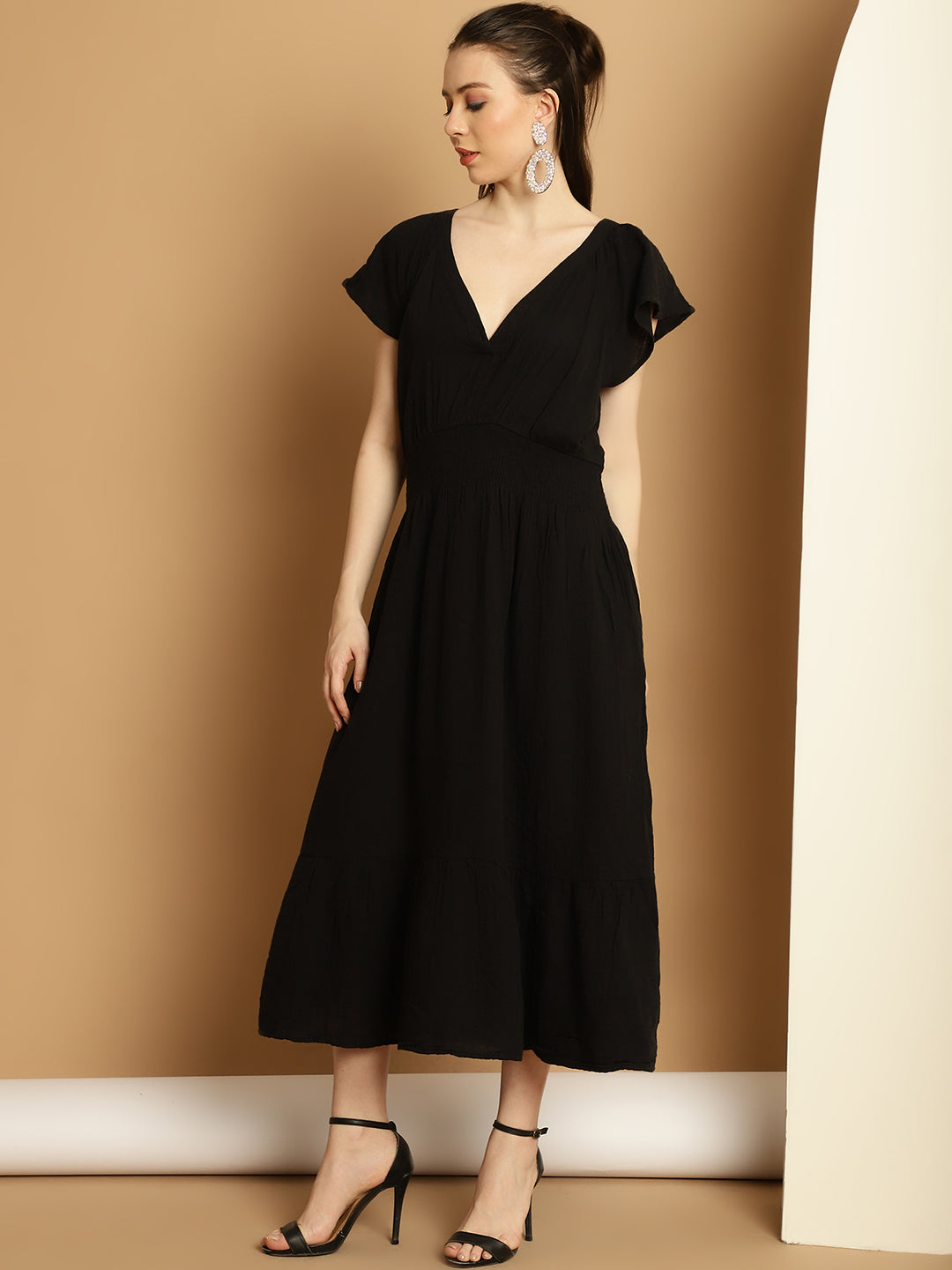 NoBarr Women's Casual Wear Regular Fit Solid Black Color Dress with Pockets. Made of 100% Cotton.