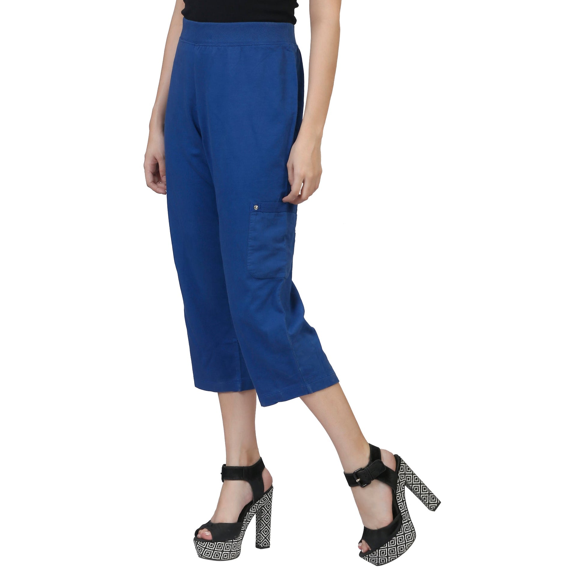 Style is all about comfort, go super casual with this Capri from the House of NoBarr. Wear this elastic waist Blue Capri with matching top, Get the ultimate comfy Sporty look.