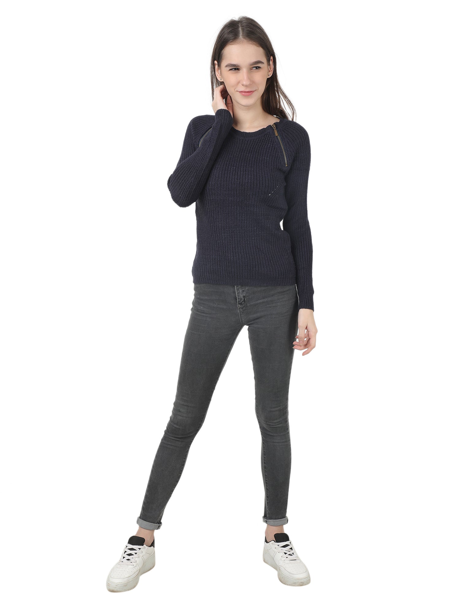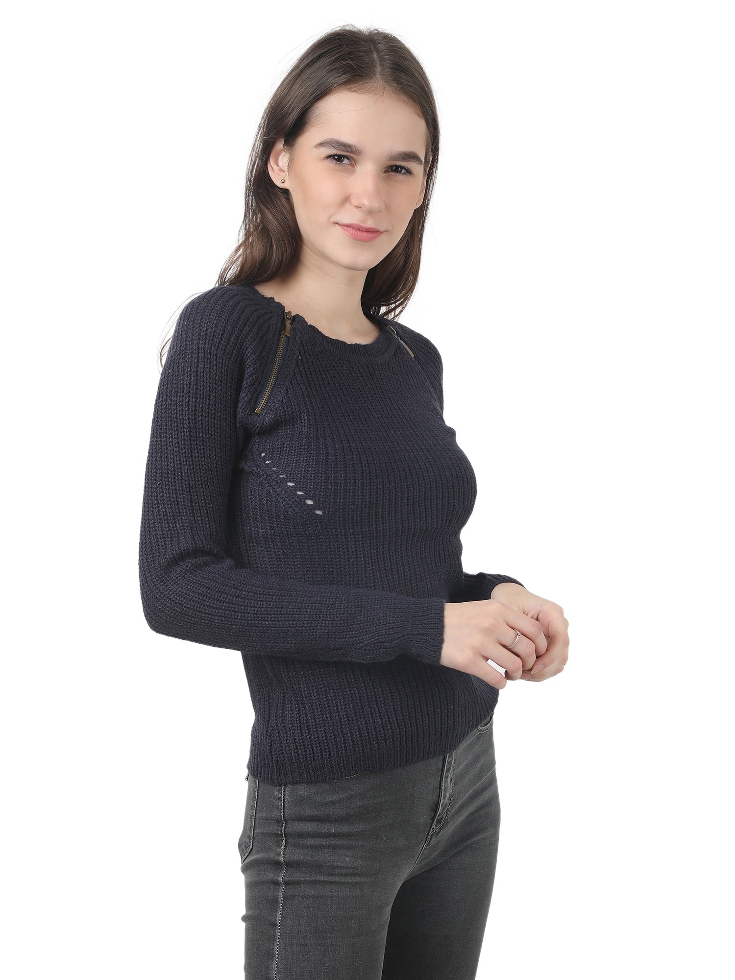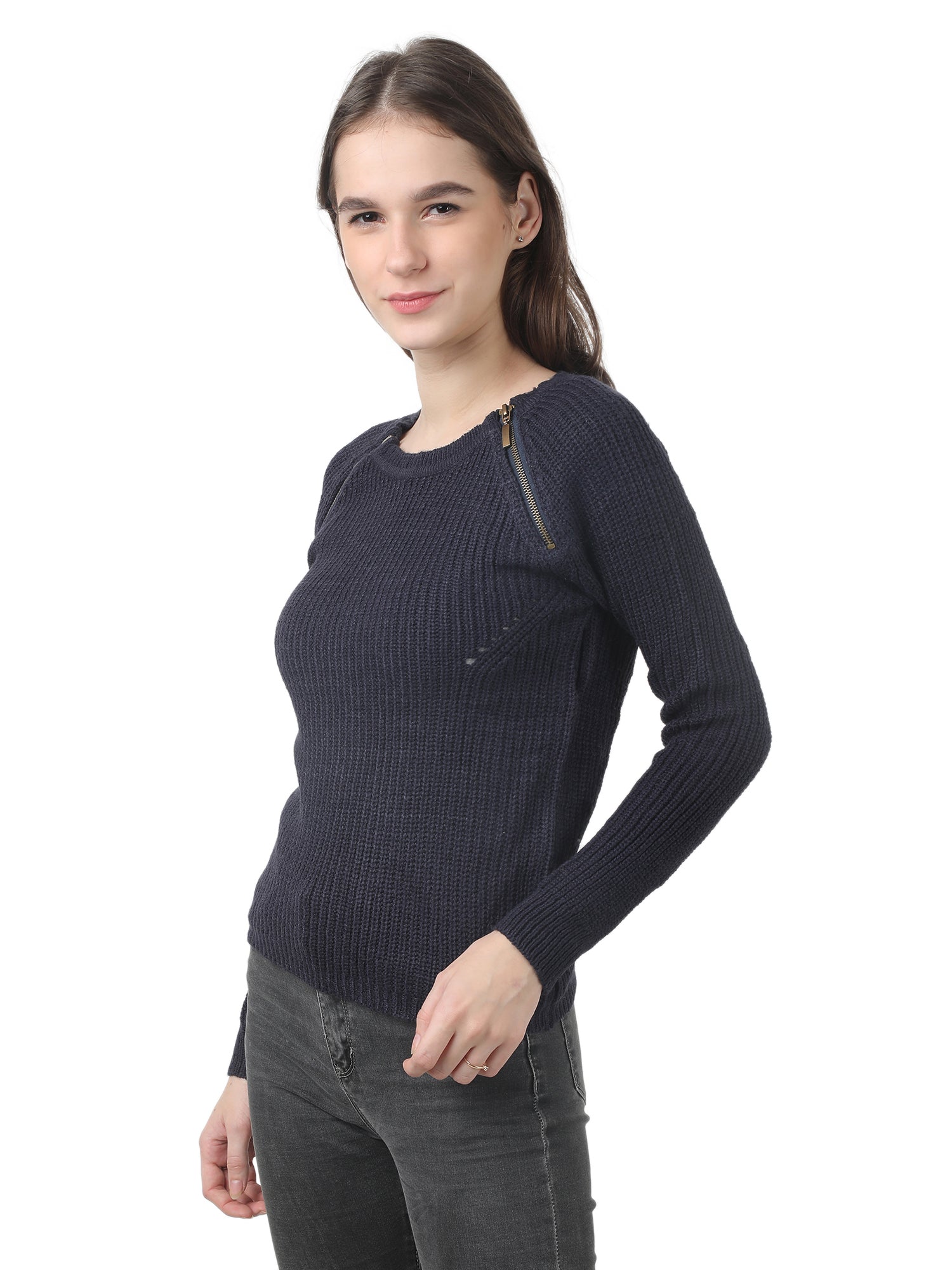 Women Blue Zip Sweater