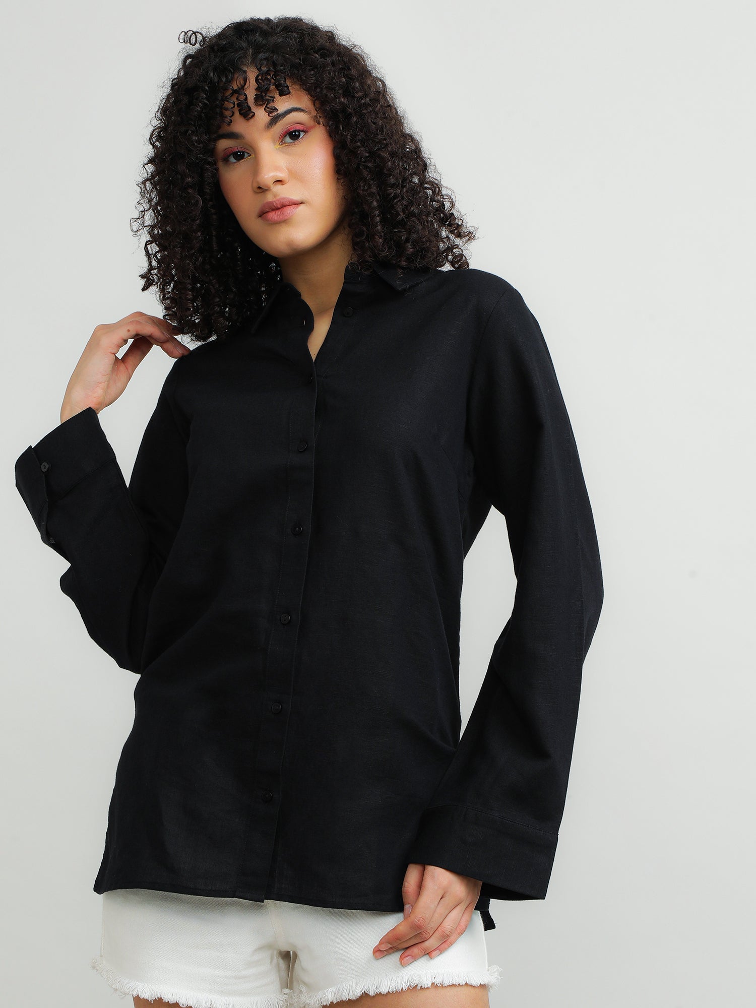 Chic black shirts for women made of blended cotton. Perfect for everyday wear.