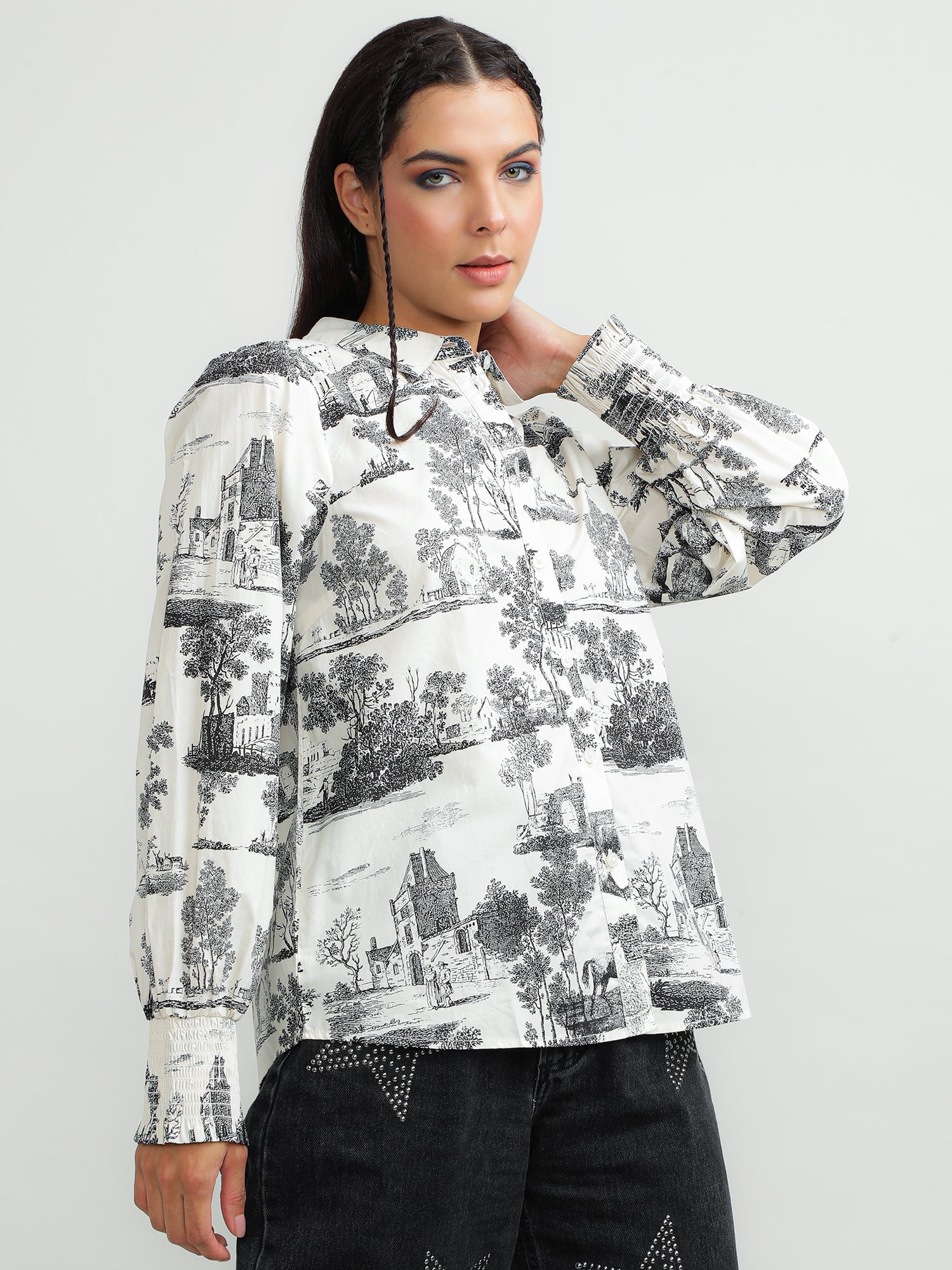 Women Cotton White Printed Shirt