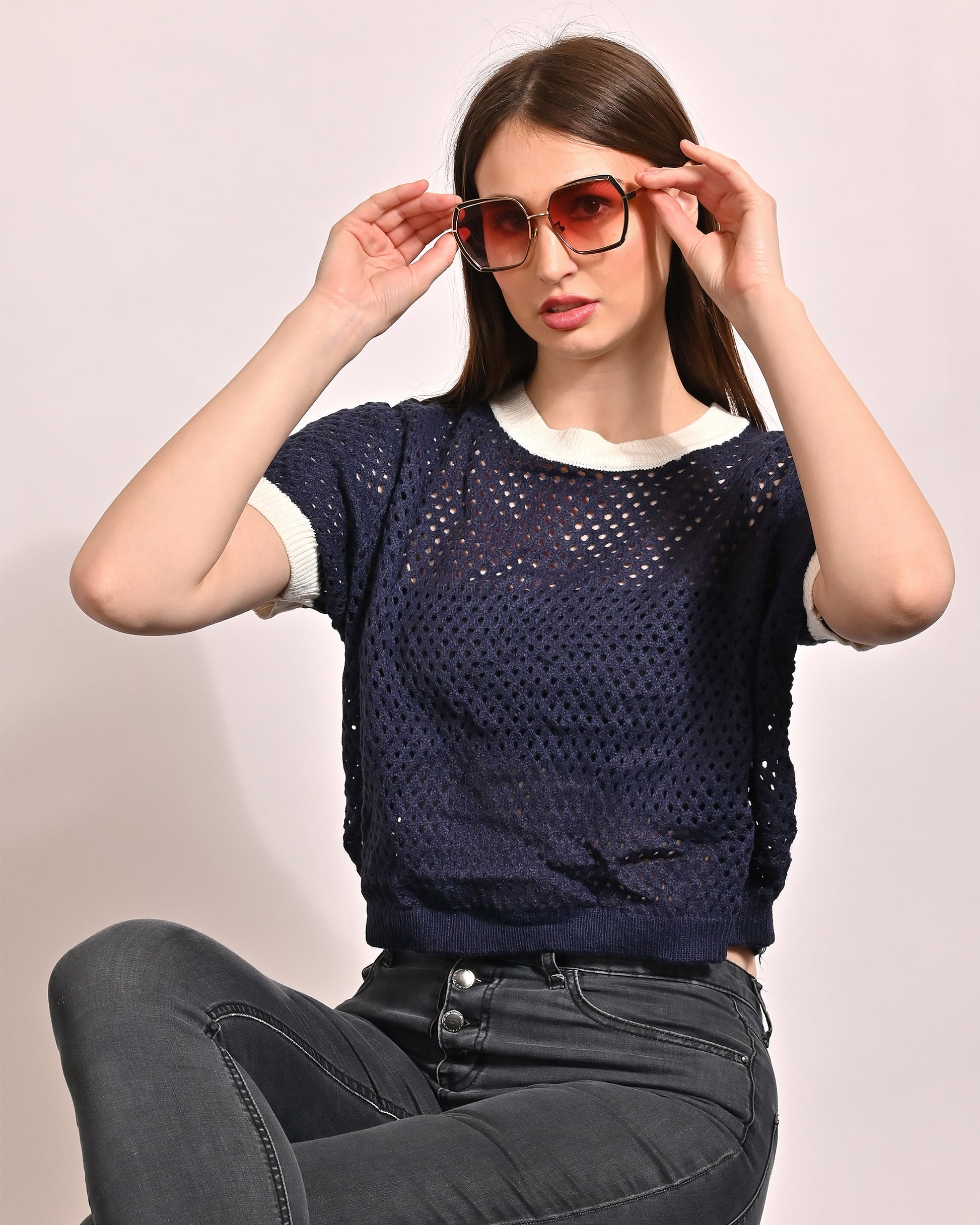 Knit top for women's round neck, knitted crochet, thin see through mesh, solid colour, crochet hollow out top perfectly matches came, tank tops, blouses, dress, skirts, jeans, leggings, skirts or shorts in spring, summer. Made of 100% Viscose