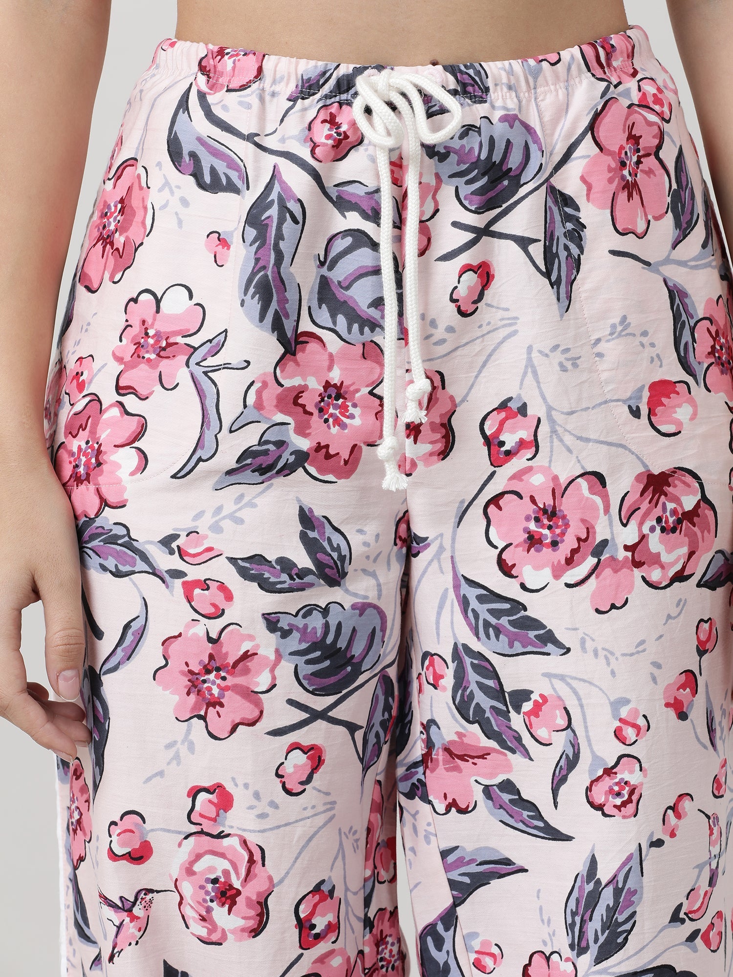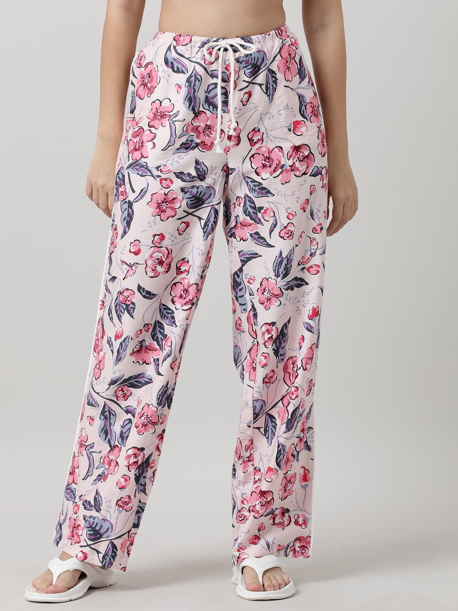 Stylish yet cozy, these Pink Floral Print Pants feature a regular fit, elasticated waistband, and charming floral design for everyday elegance.