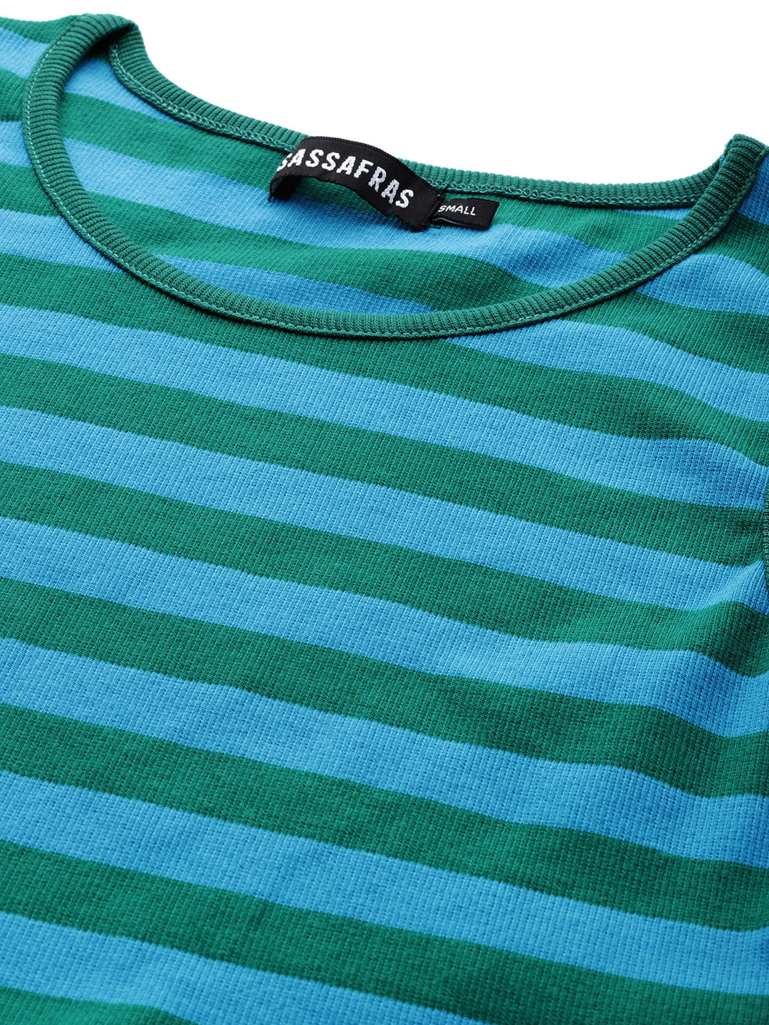 Green & Blue Rib One Side Sleeve Crop Top, in Cotton Rib fabric, Unlined, Crop Length, Slim Fit , No Closure, Straight Hemline and features One Full Sleeve Detail At Top
