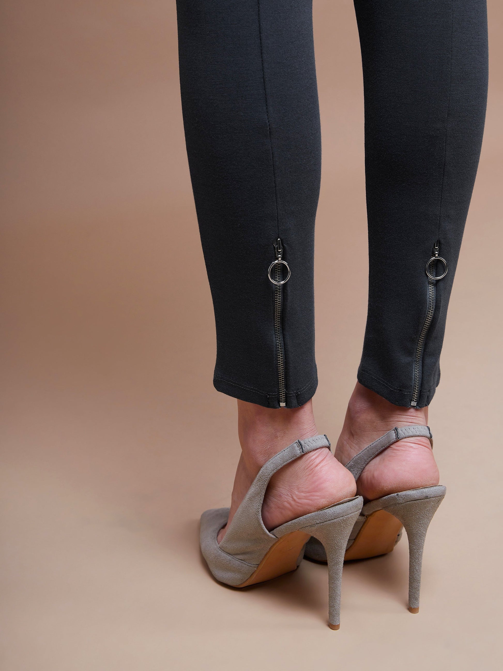Grey Bottom Zipper Jegging, in Roma fabric, Unlined, Ankle Length, Slim Fit, Slip On, Straight Hemline and features Zipper Detail At Bottom