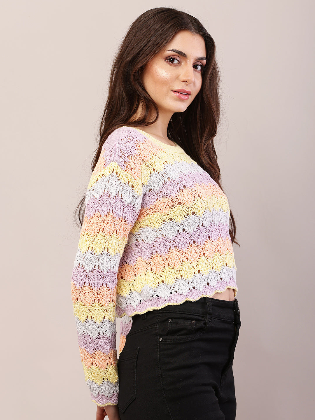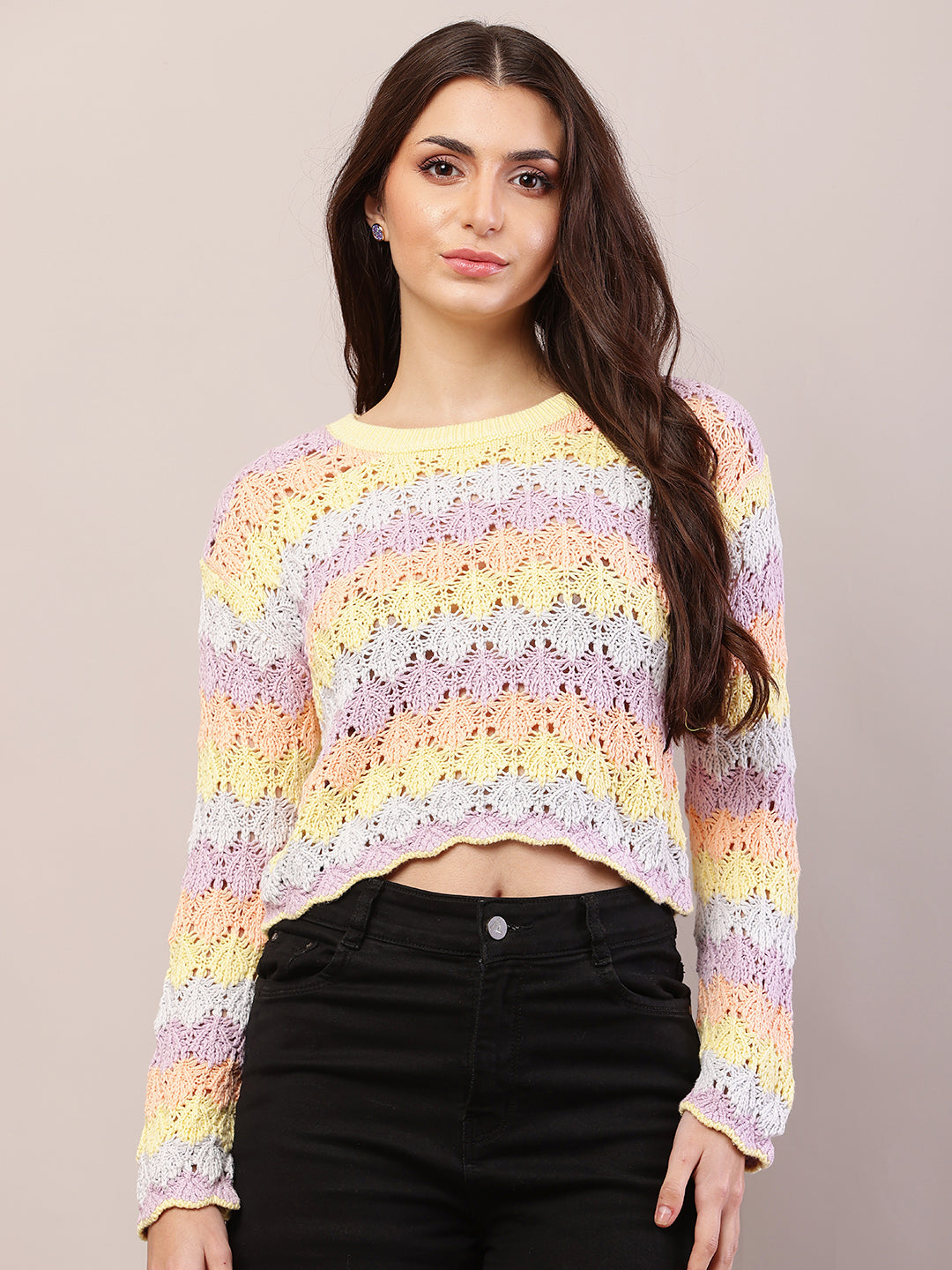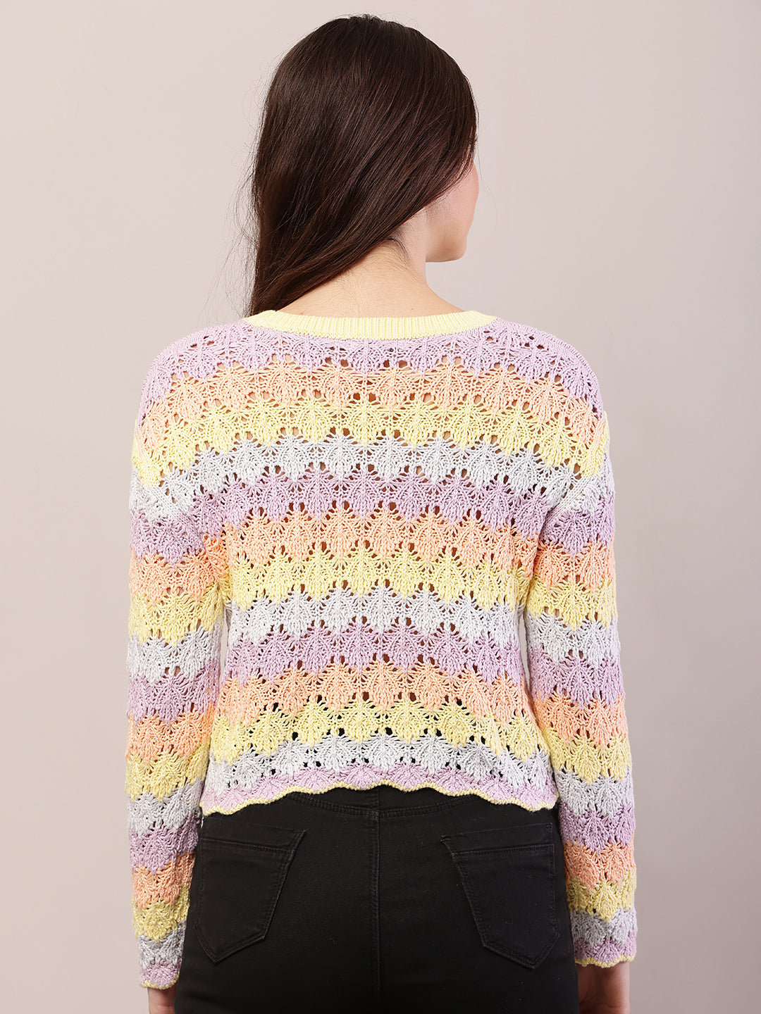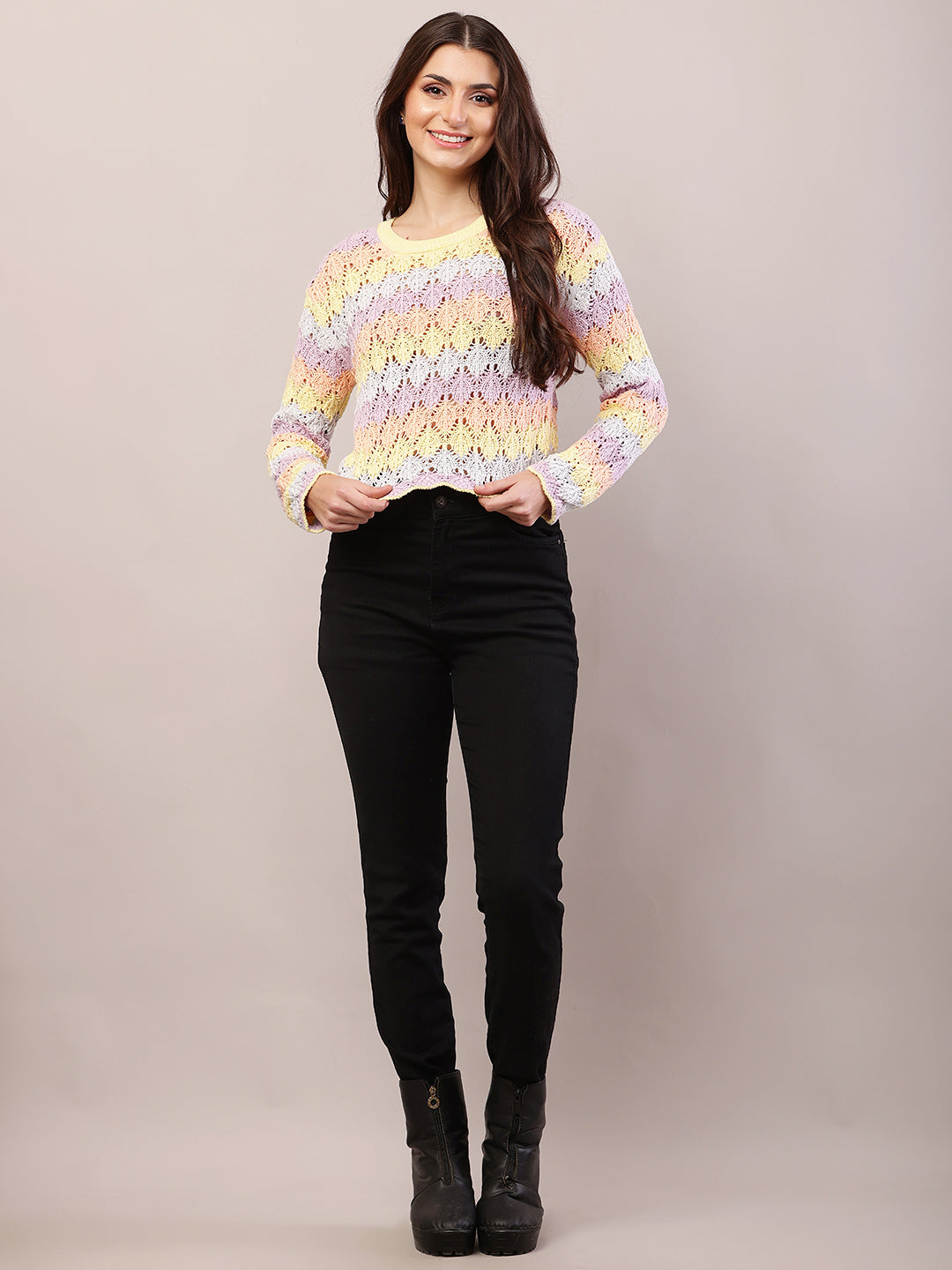 Add a burst of color to your outfit with the NoBarr Women's Multicolour Cotton Sweater—bright, bold, and cozy.