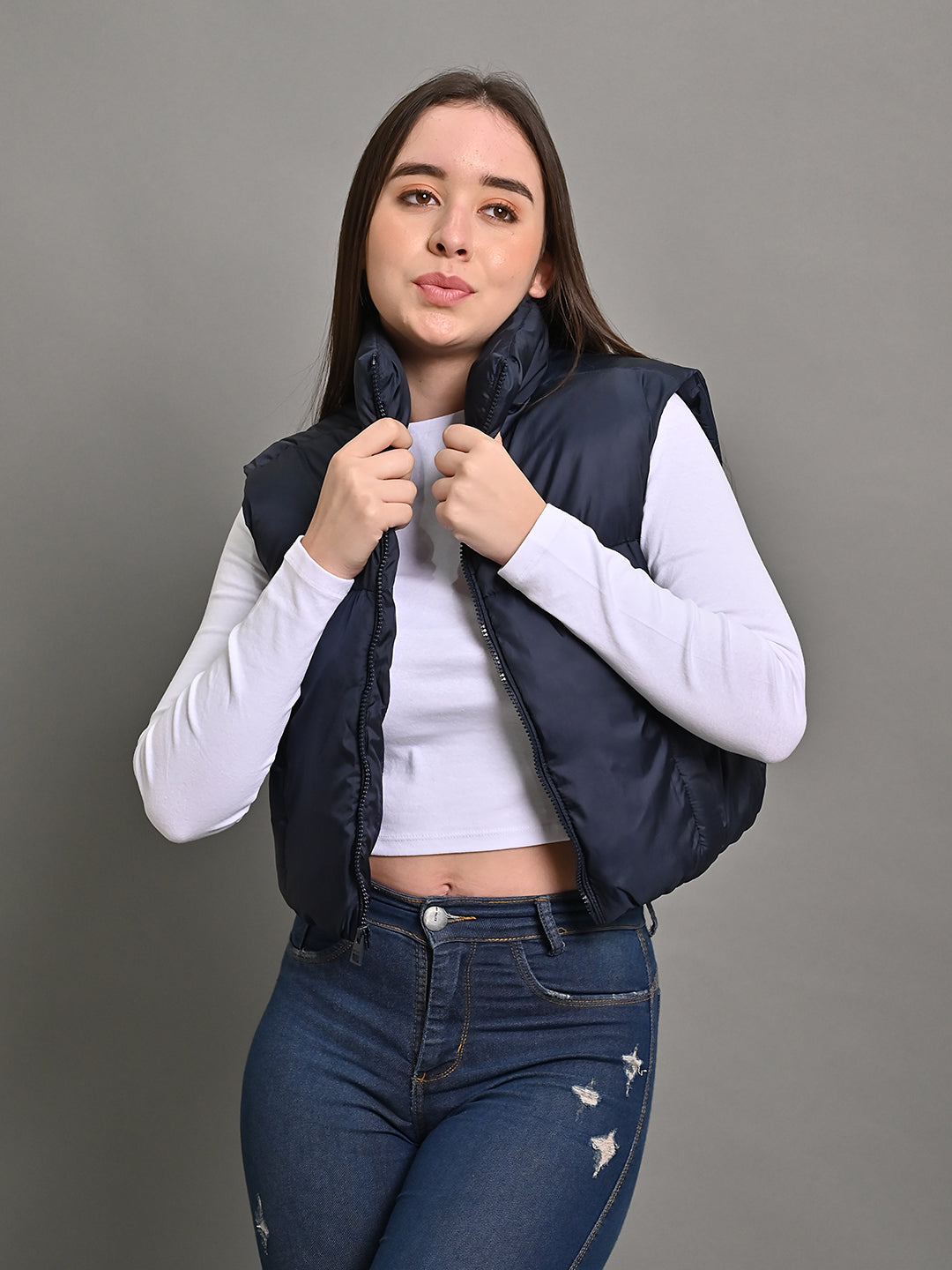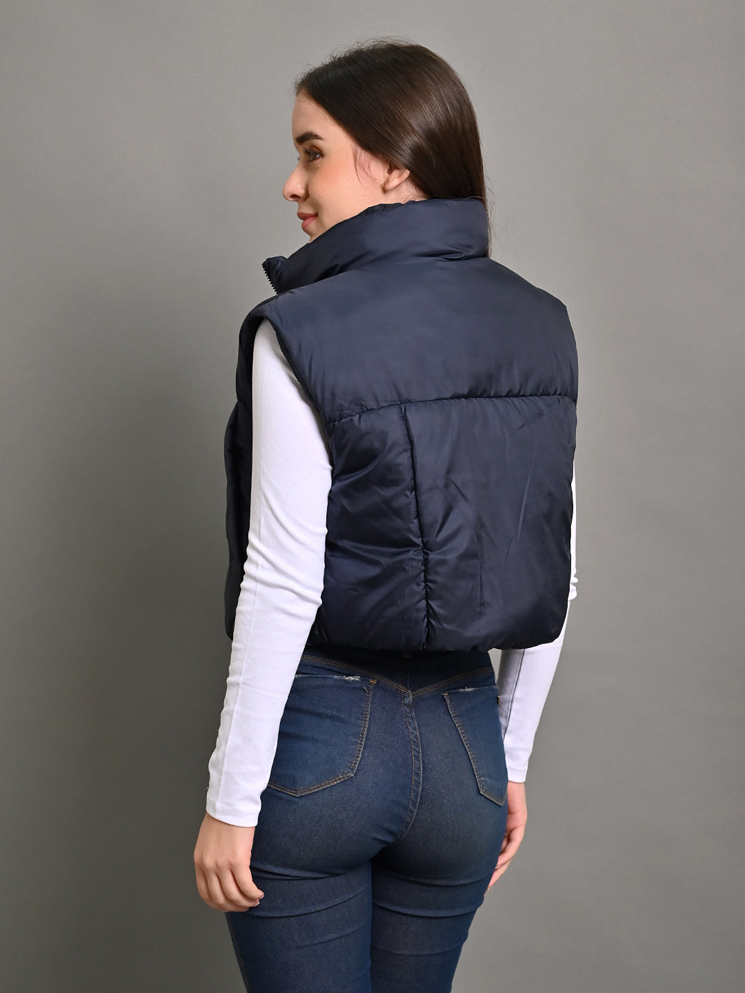 Stay warm and stylish in the Puffer Crop Dark Blue Jacket. The cropped design and dark blue shade combine fashion with functionality, perfect for colder days.