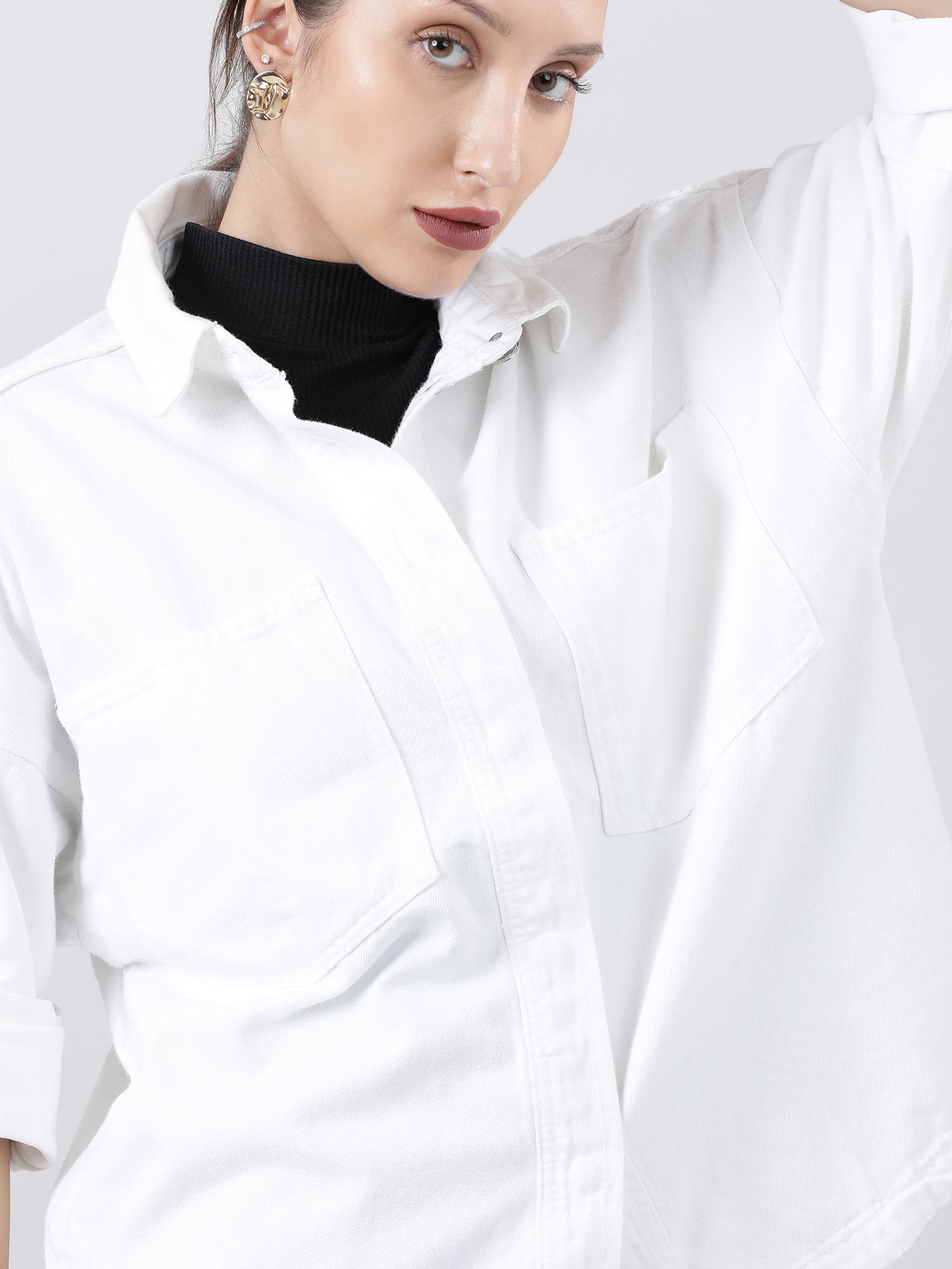 Effortlessly chic white oversized shirt, tailored for a comfortable regular fit with classic button-down style for versatile sophistication.