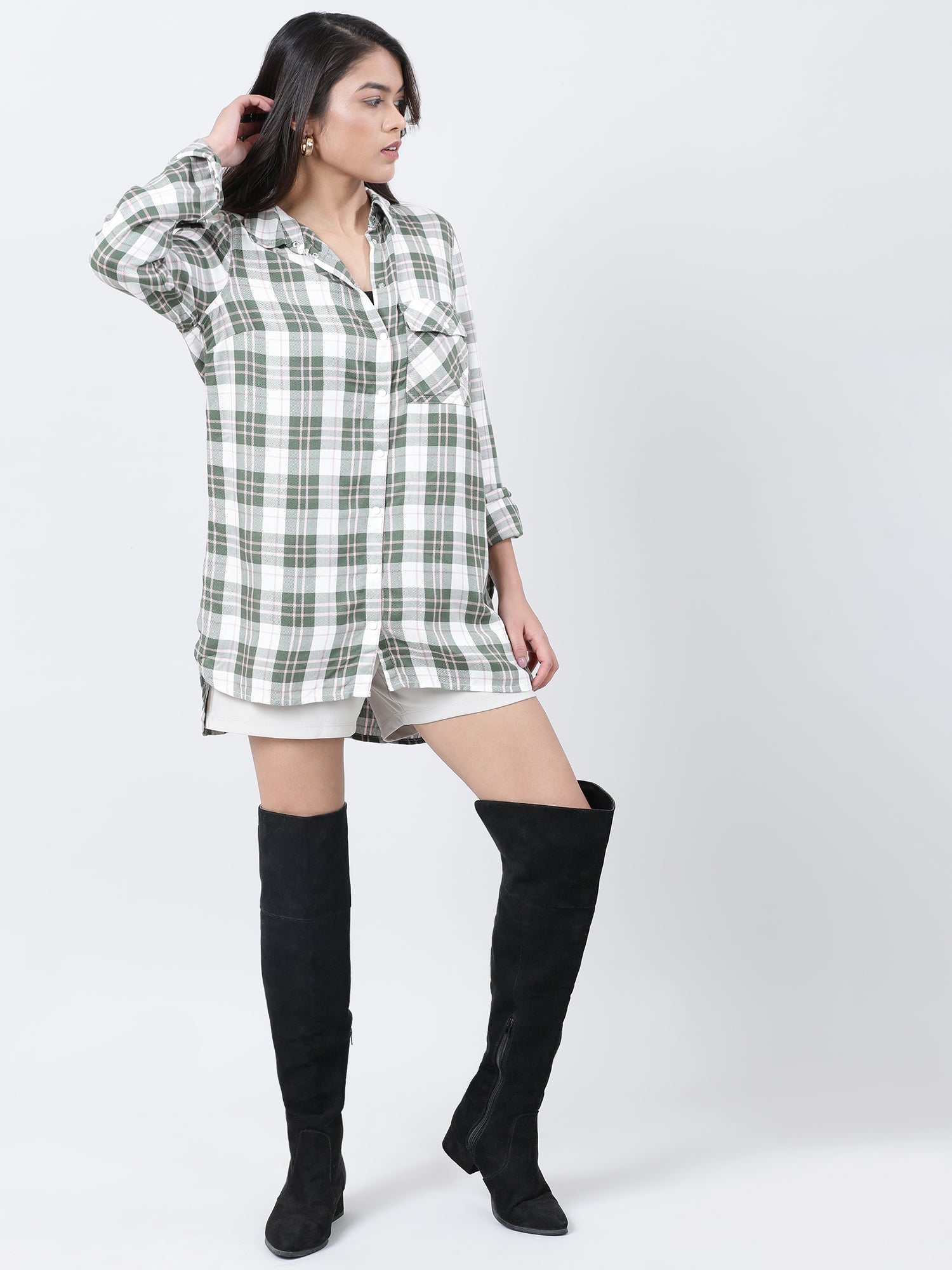 Women Relaxed Fit Green Checked Shirt