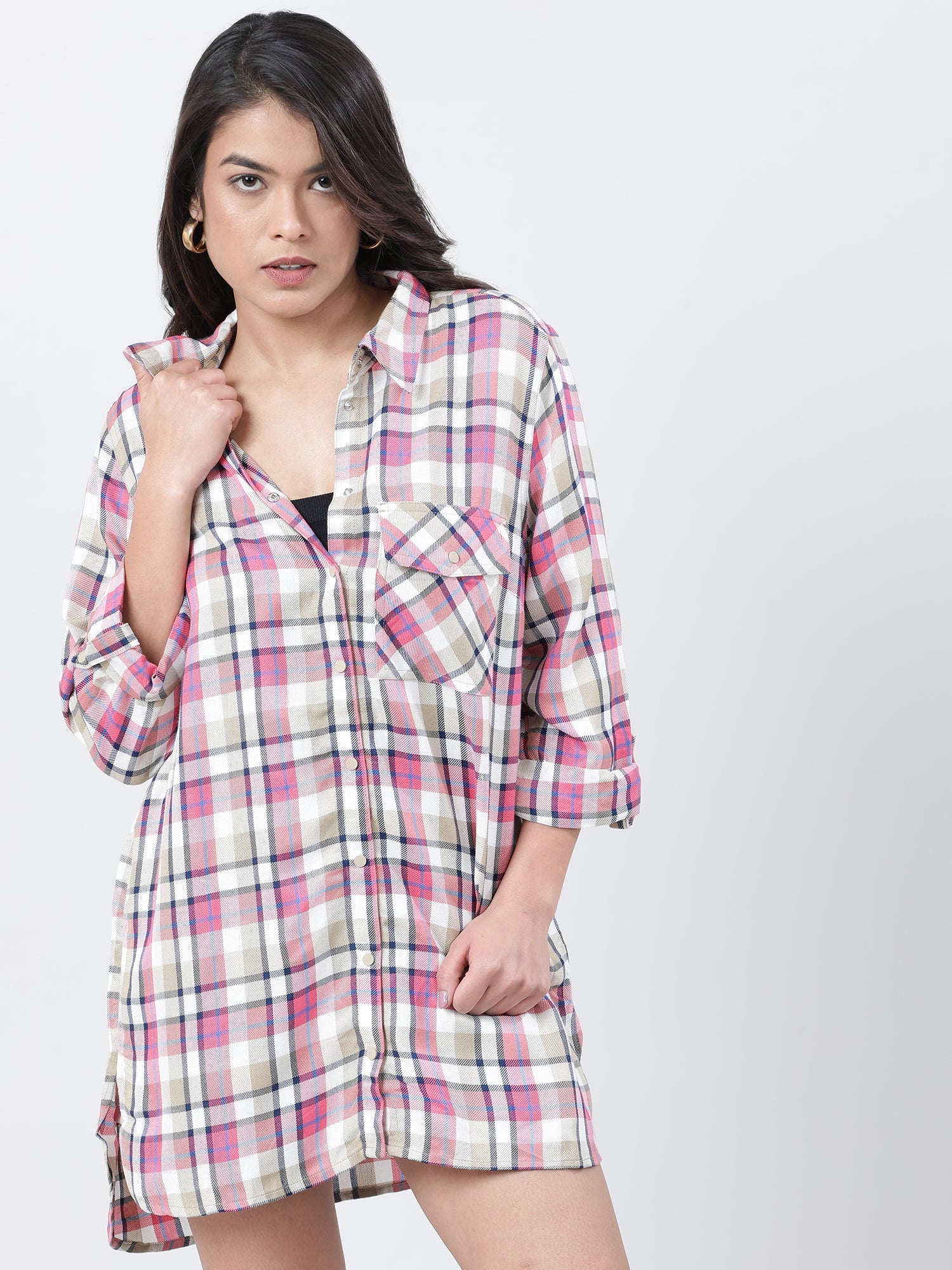 Women Relaxed Fit Pink Checked Shirt