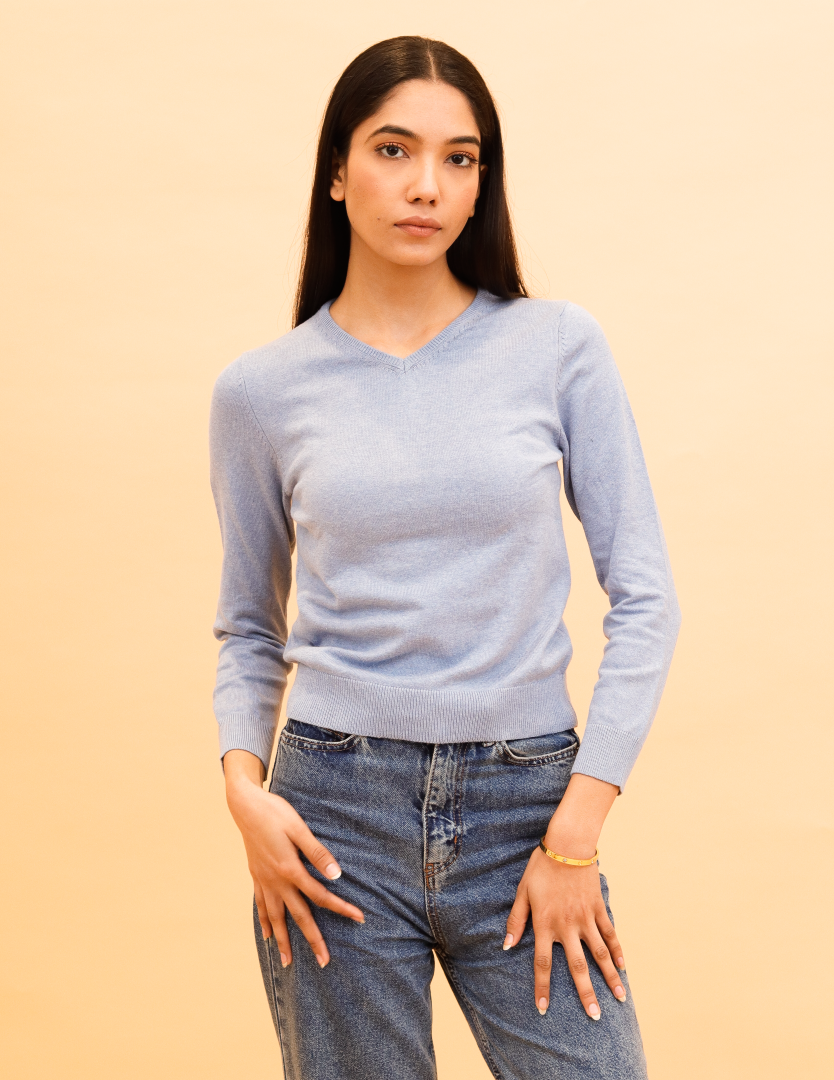 Warm sweater with V-neck made of Viscose, light and pleasant to the touch. A basic and versatile garment, suitable for different occasions of use. The presence of the NoBarr logo guarantees the high quality of the garments through the application and monitoring of specific standards in the production of Light color. Made of 100% Viscose.