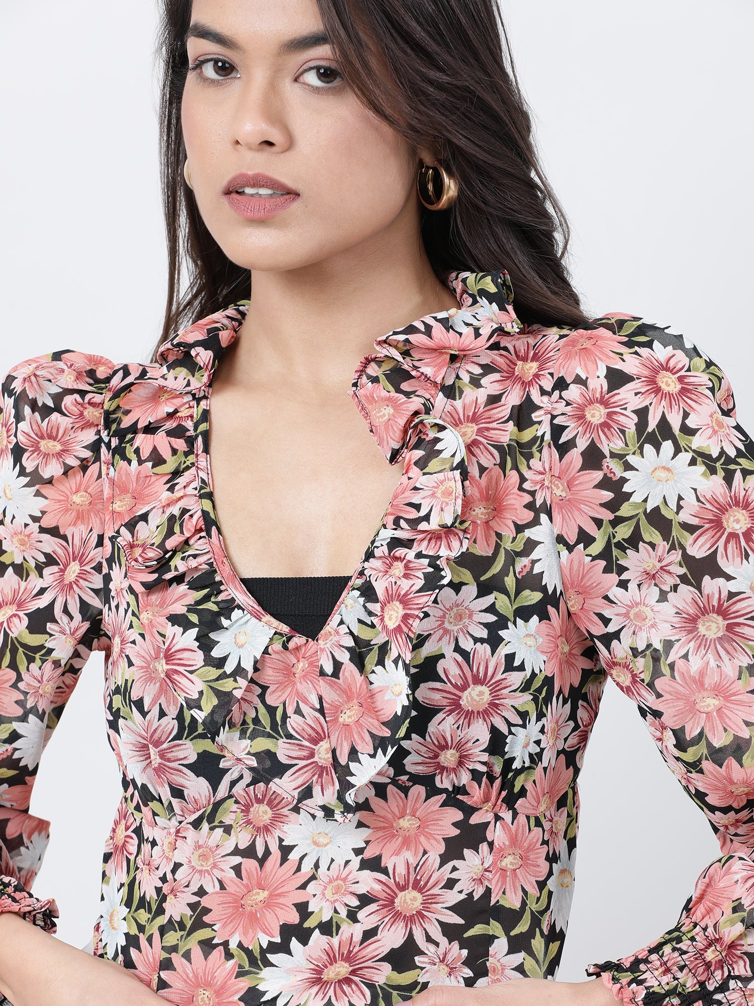 Enjoy the elegance of femininity in our full-sleeved printed top, that is made with a lovely floral design, an easy slip-on style, and a v-neck for a flattering fit.