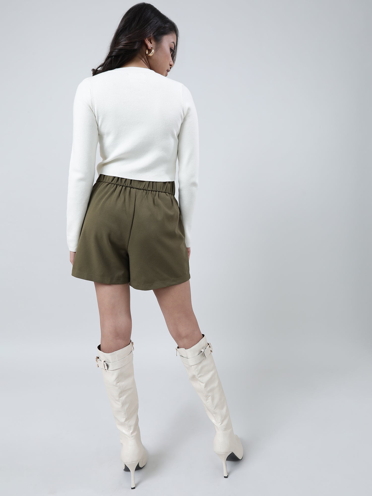 This sleek cream-coloured slim-fit women's t-shirt adds a refined touch to any ensemble, enhanced by its stylish ribbed pattern.