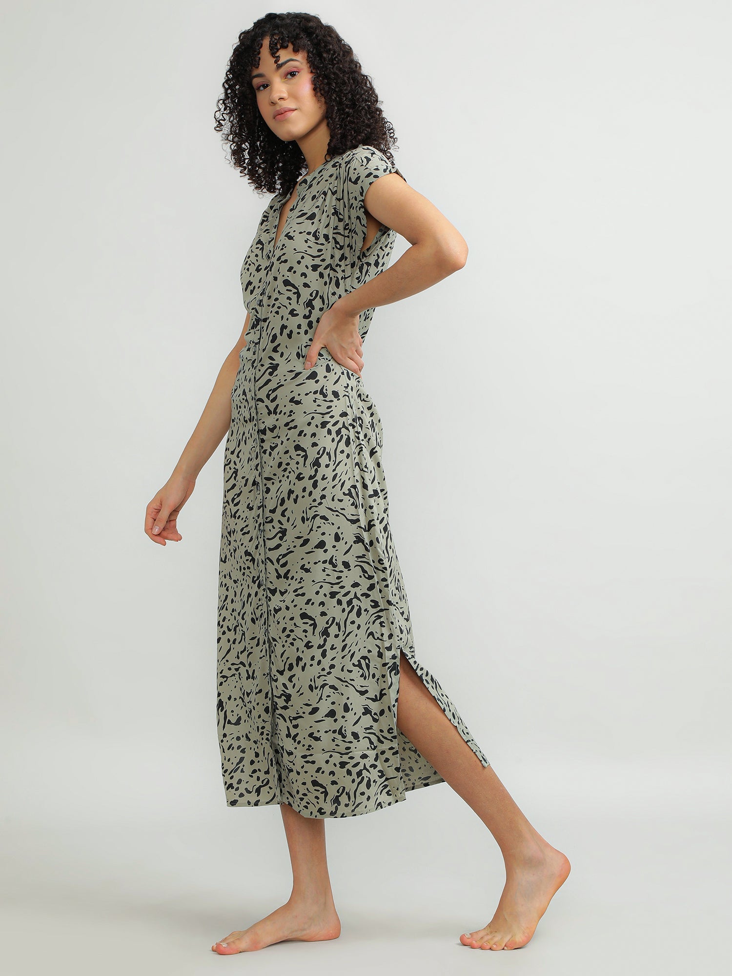 Women Viscose Olive Breezy Dress