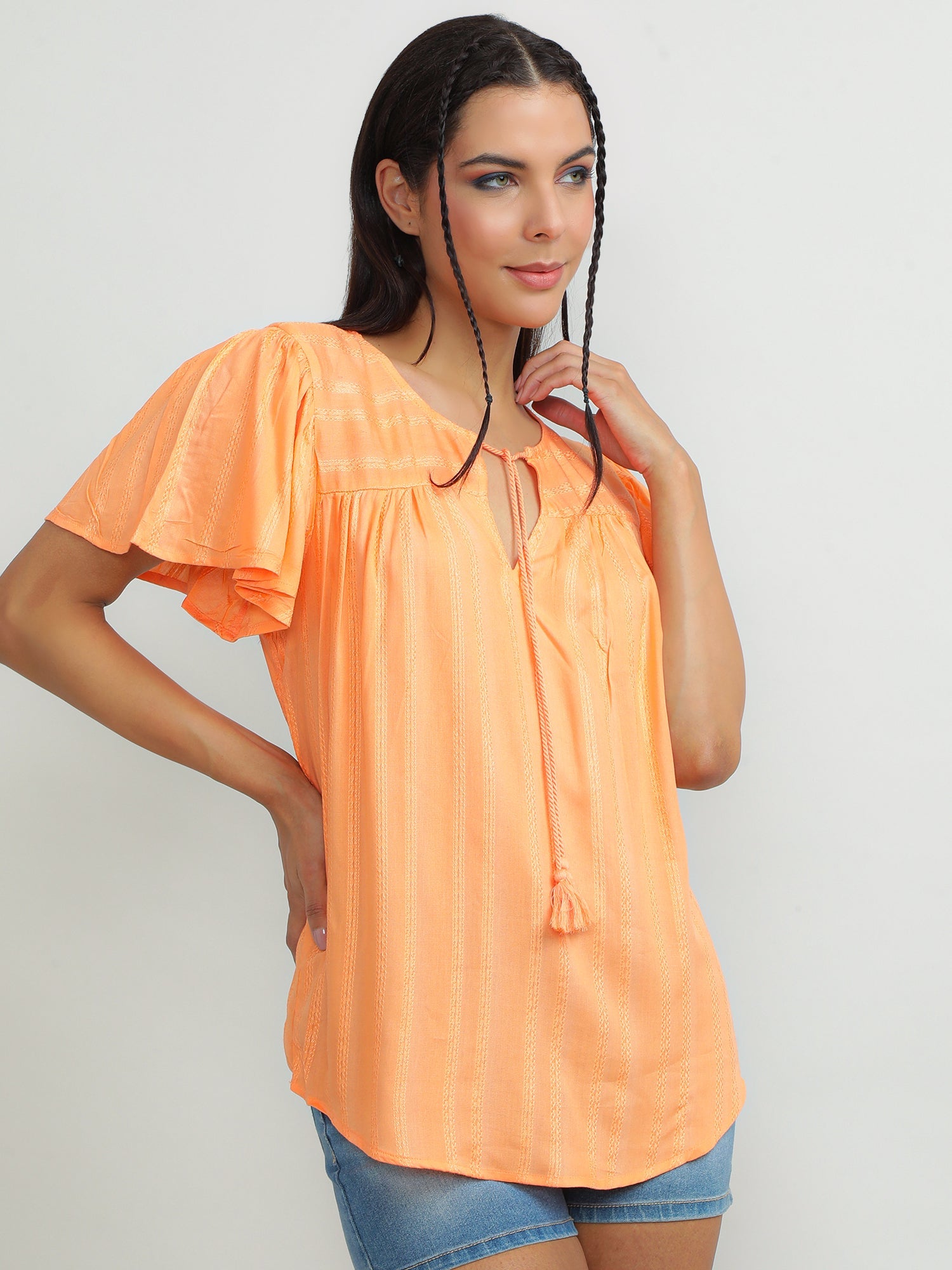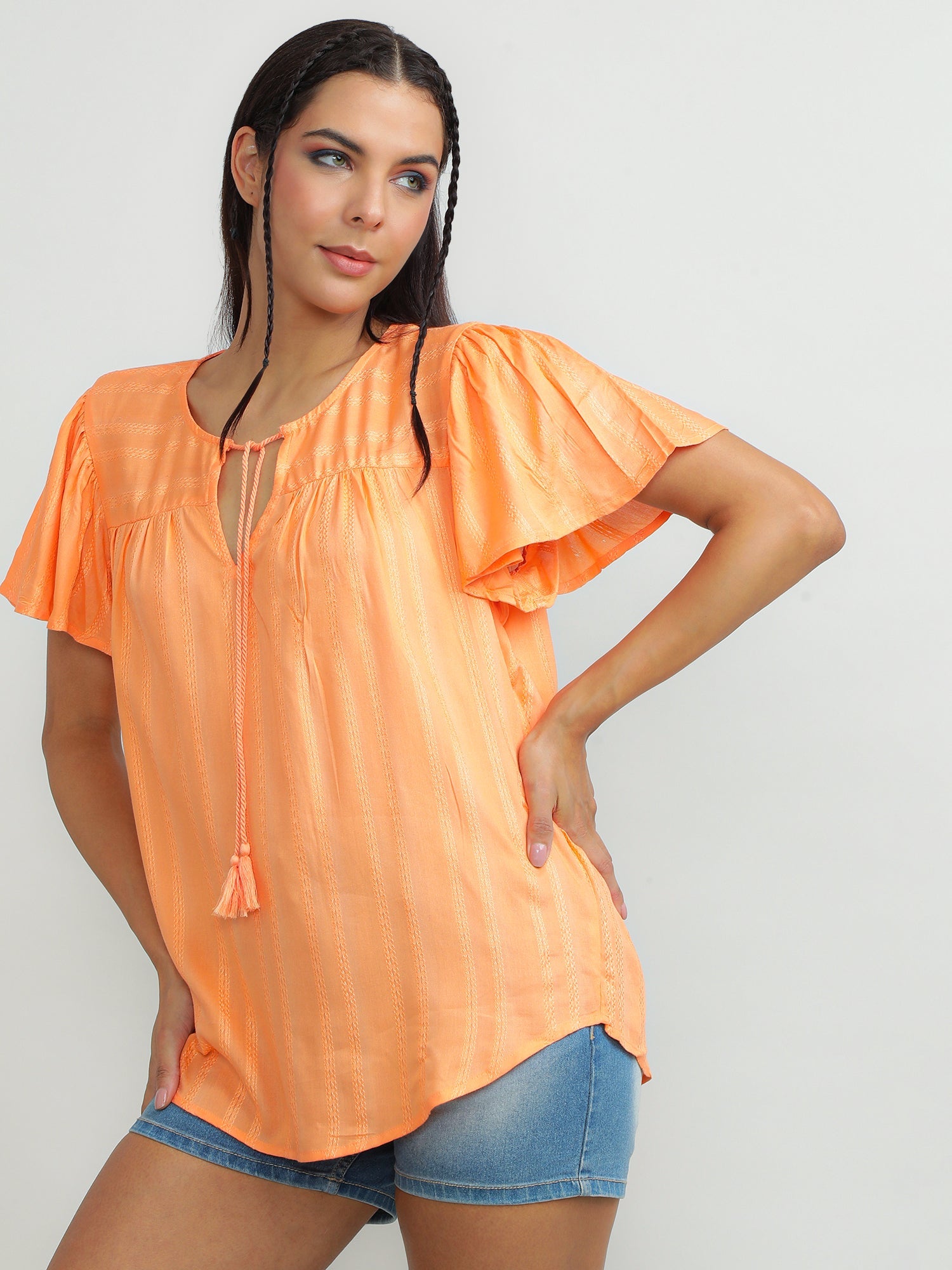 Add a pop of color to your wardrobe with orange viscose tops for women. Versatile and chic, perfect for any occasion.