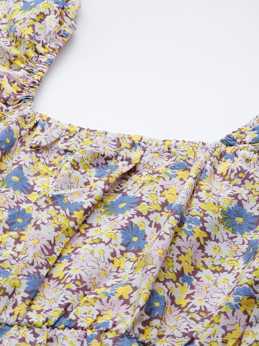 White Floral Square Neck Short Dress , This Above-The-Knee A-Line Dress In Rivera Fabric Features A Square Neck And Ruffle Detail, Creating A Breezy, Relaxed Vibe.