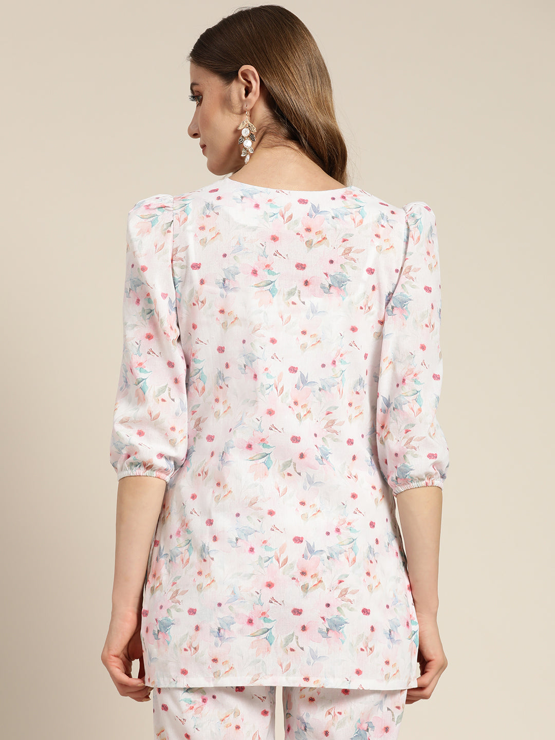Women White Floral Sustainable Puff Sleeves Top