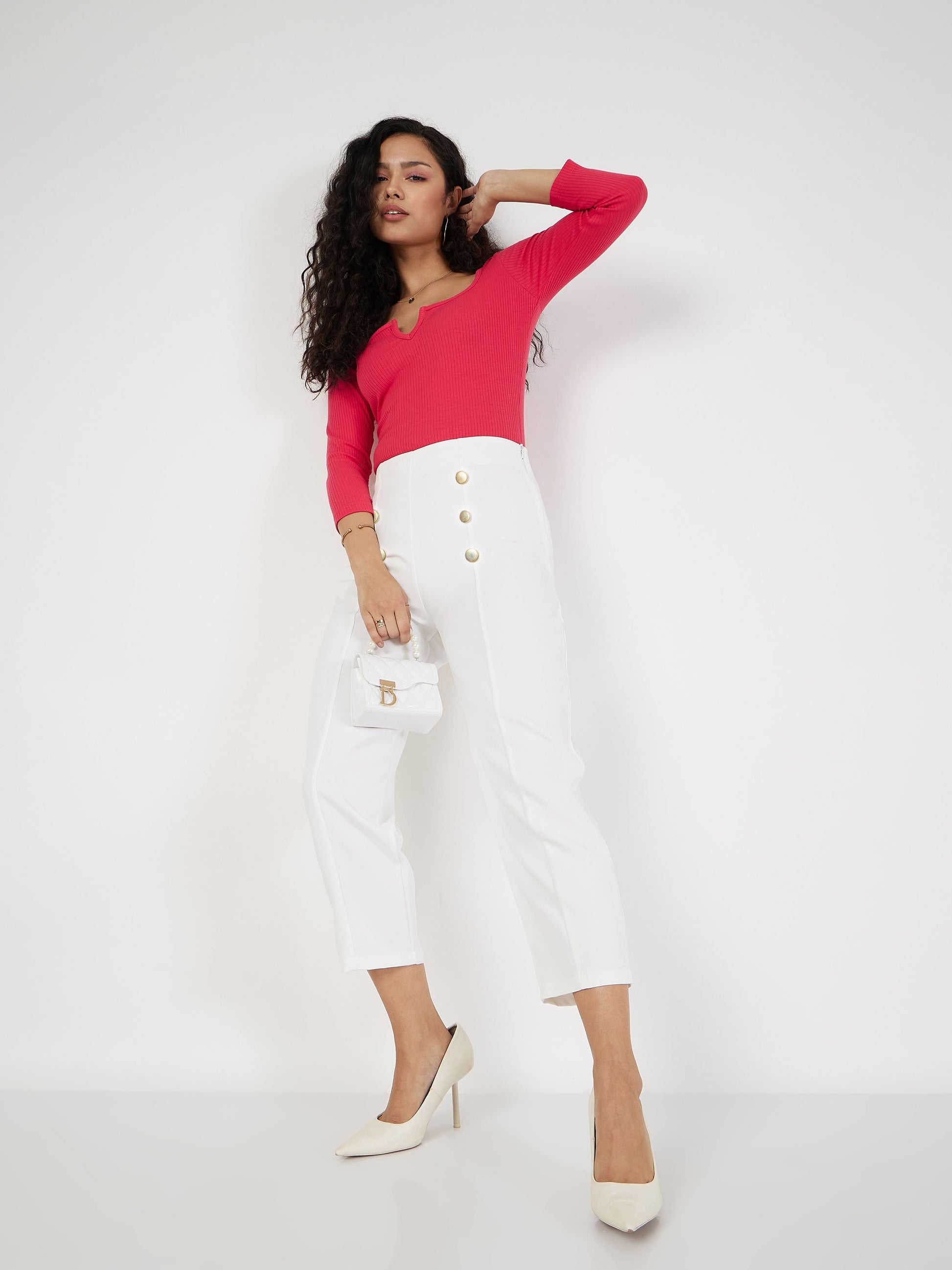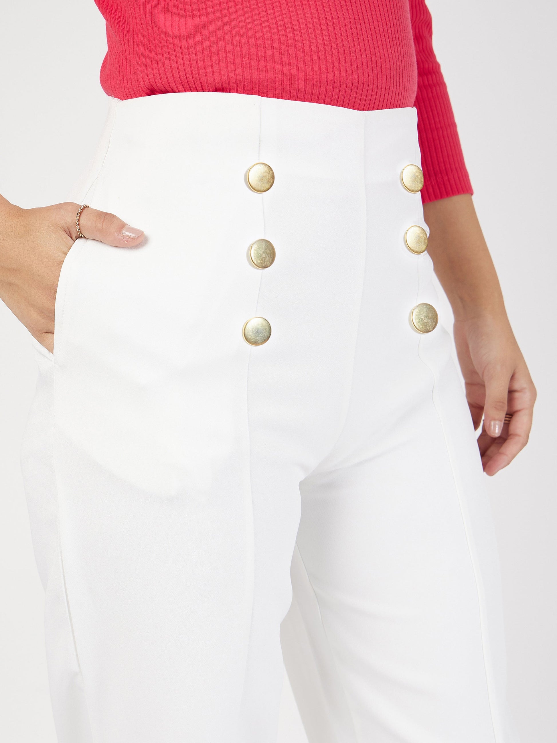 White Front Darted Balloon Fit Pants, White Balloon Fit Pants In Marina Fabric, Featuring Cut-Out Detail And Zipper Closure.