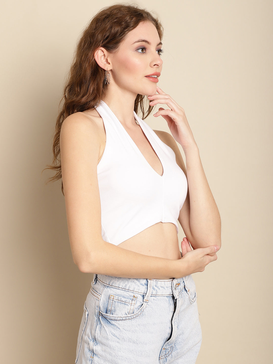 Women White Halter Neck Crop Top