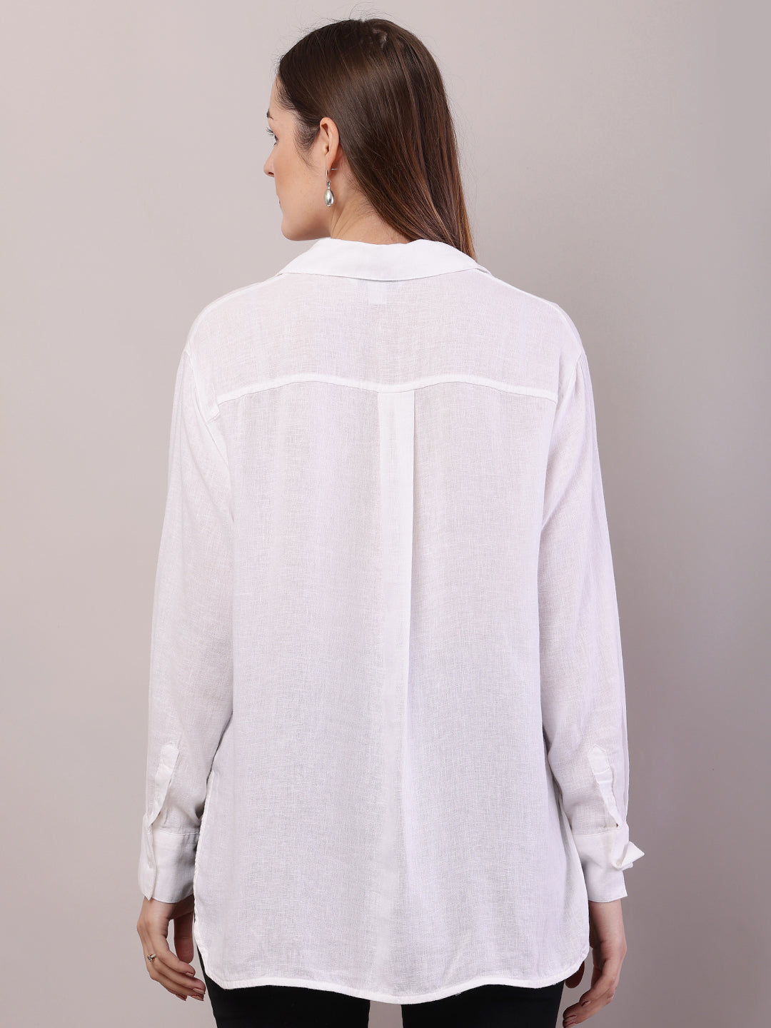Women White Linen Shirt Collar Full Sleeve Shirt