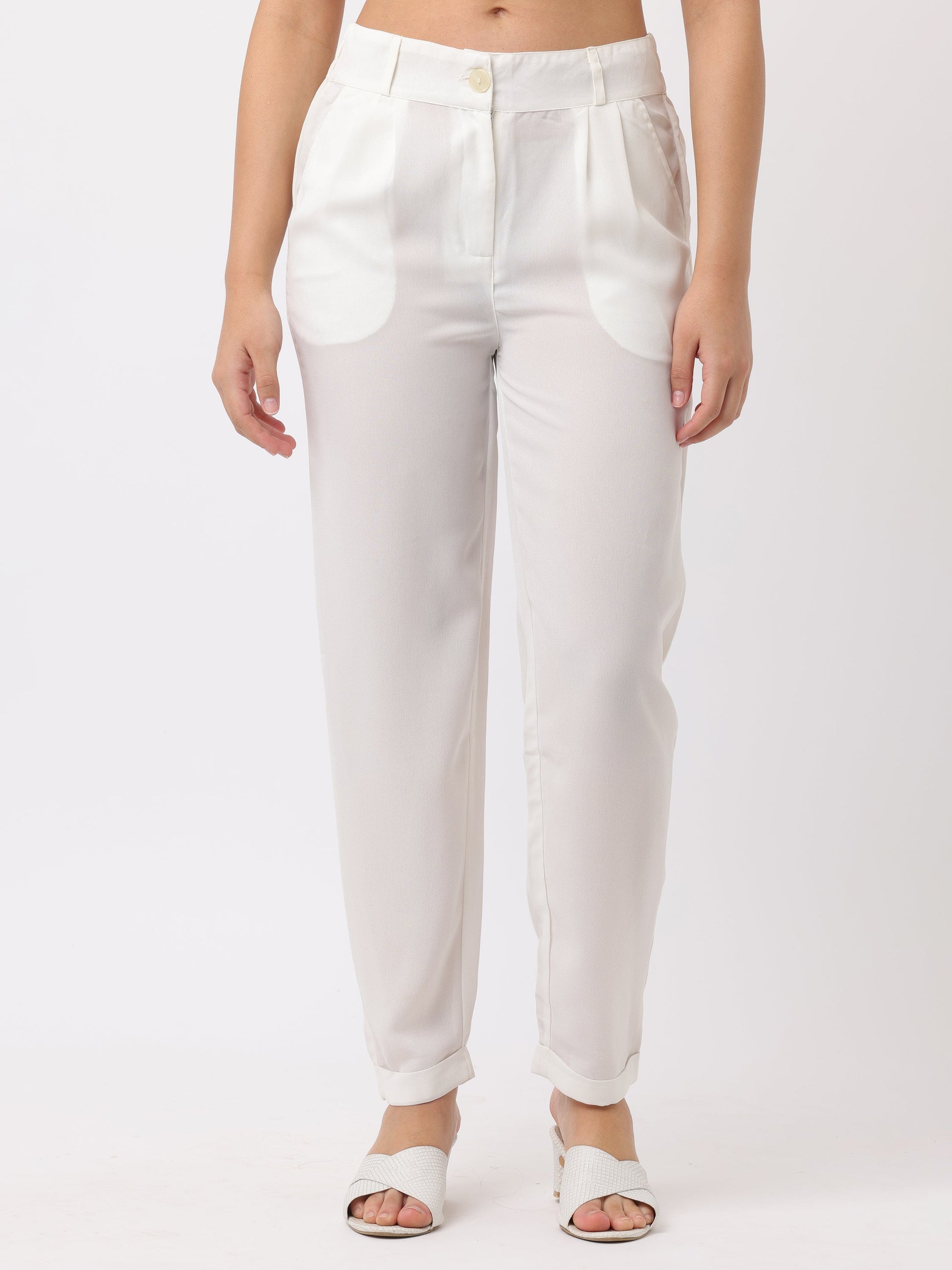 Timeless and versatile, these Women’s White Regular Fit Pants provide both comfort and sophistication for everyday wear.
