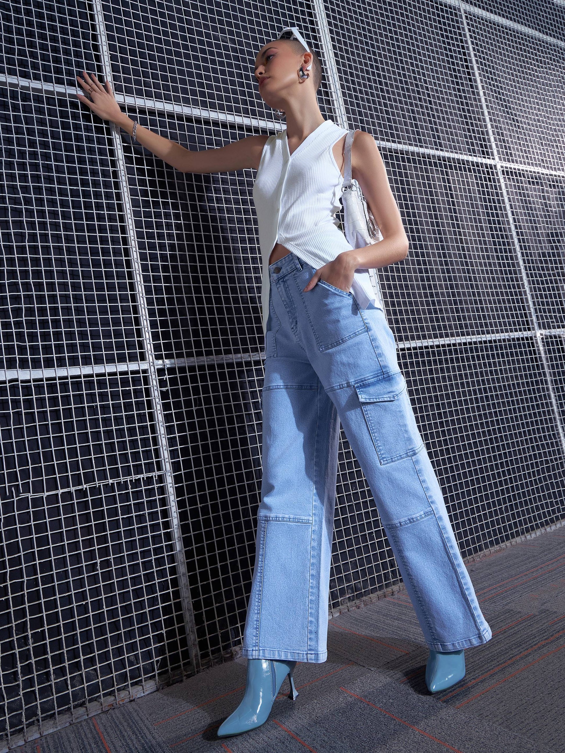 Women White Rib Front Button Sleeveless Top