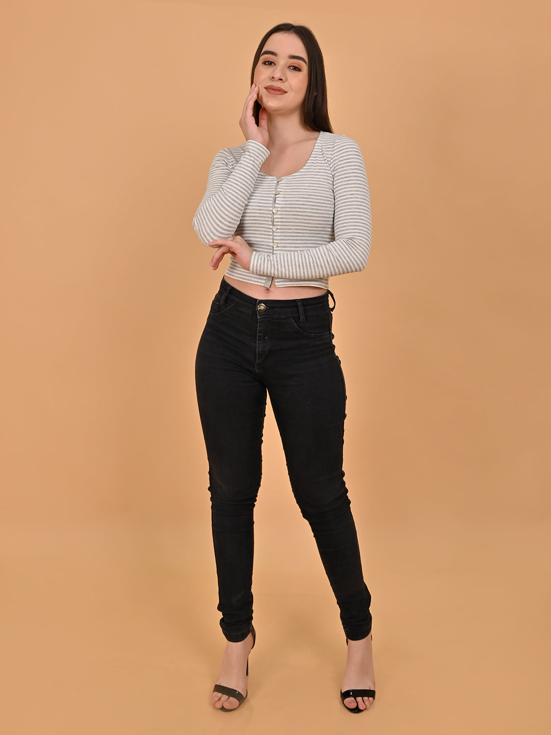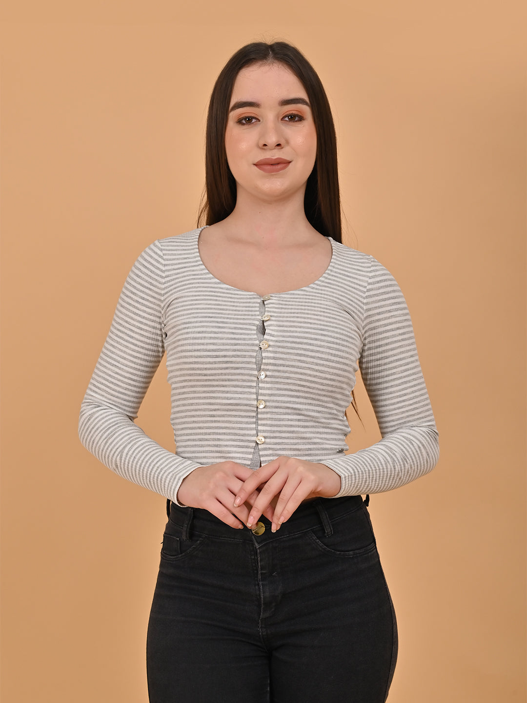 Elevate your casual ensemble with the NoBarr Women Buttoned Full Sleeve white Striped Short Top, a versatile piece designed to seamlessly transition from day to night. Featuring a stylish striped pattern, this short top exudes charm and sophistication. The full sleeves provide added coverage while the buttoned front adds a touch of elegance. Crafted with comfort in mind, it offers a lightweight and breathable feel, making it perfect for year-round wear. Whether you're heading to brunch with friends or a night out on the town, this top effortlessly combines style and functionality for a look that's both chic and comfortable. Pair it with your favorite denim for a laid-back vibe or dress it up with tailored trousers for a polished finish. With its flattering silhouette and timeless design, the NoBarr Women Buttoned Full Sleeve Striped Short Top is sure to become a staple in your wardrobe rotation. Made of 70% Viscose, 30% Polyamide.