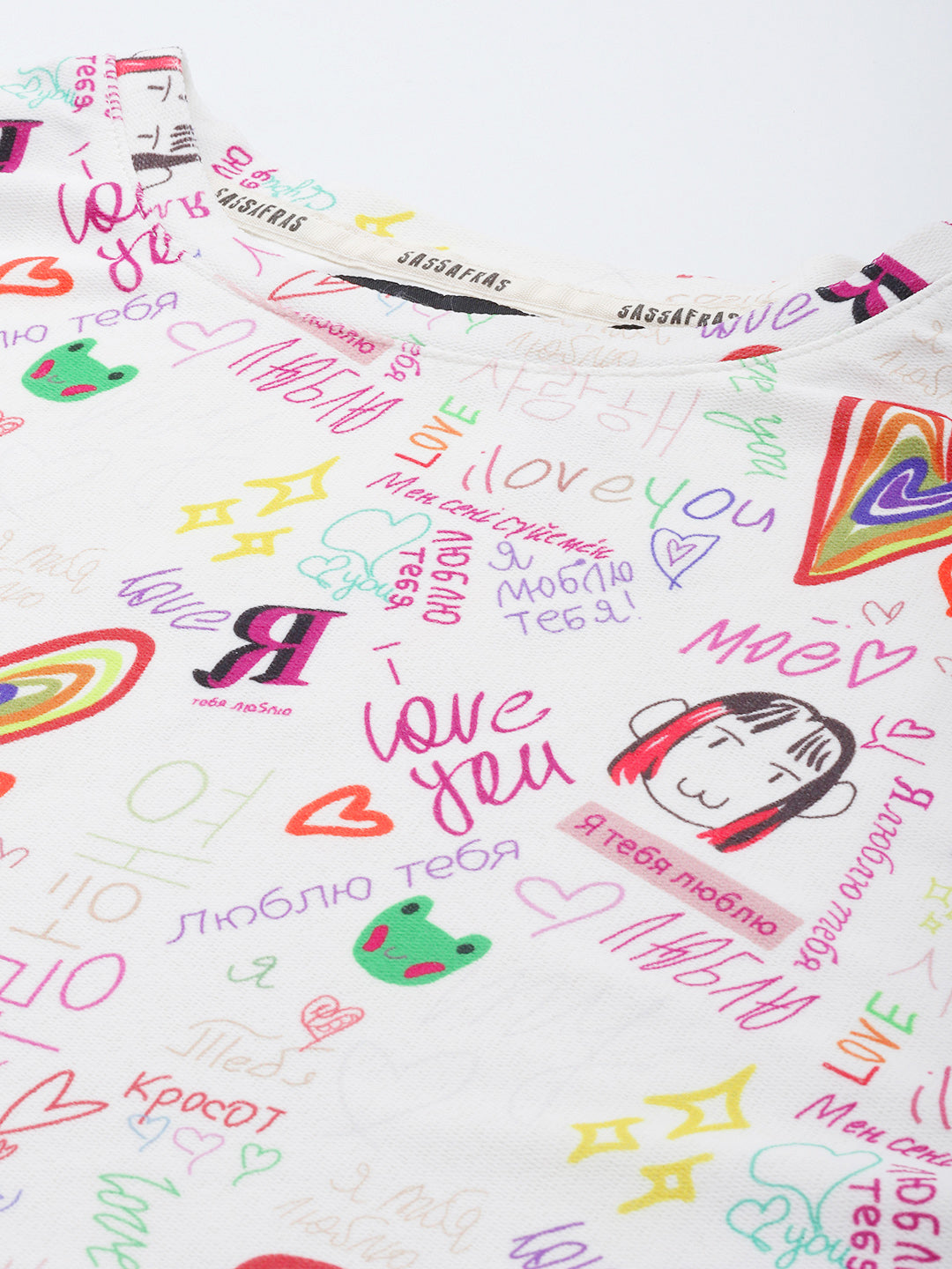 White Text Print Boxy Crop Top, A Trendy Boxy Crop Top With A Fun All-Over Print, Perfect For Casual, Laid-Back Outfits.