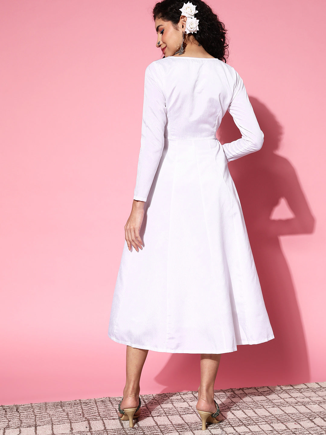 Women White Velvet Embroidered Jacket Anarkali Dress
