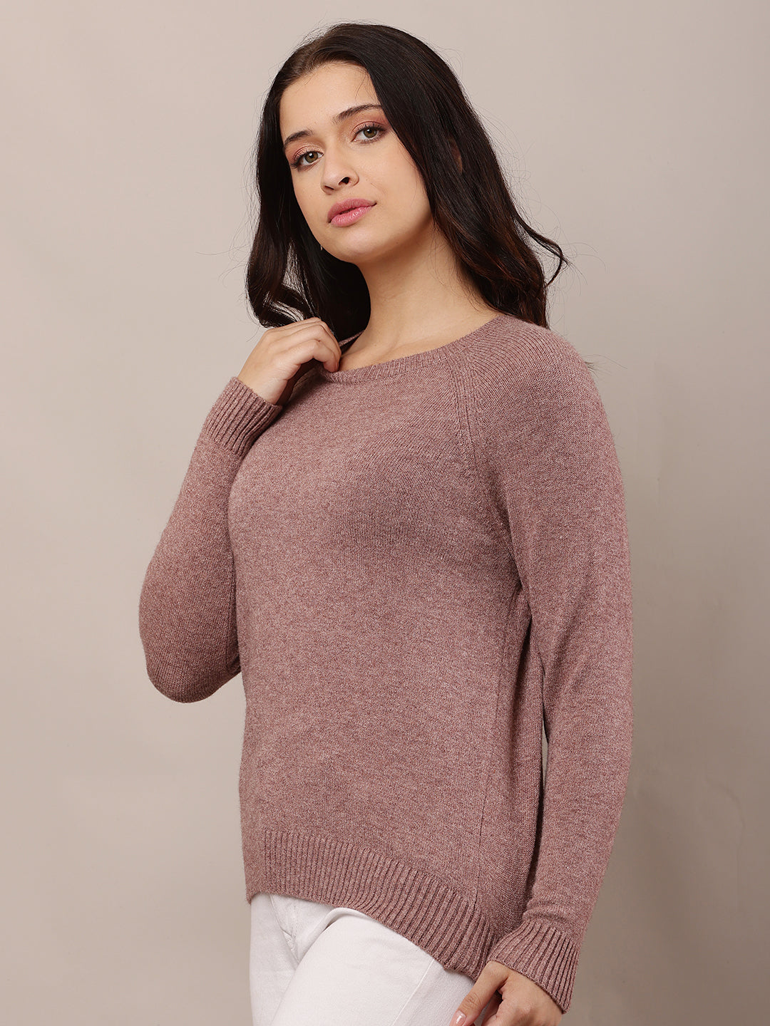 Women Wine Round Neck Sweater