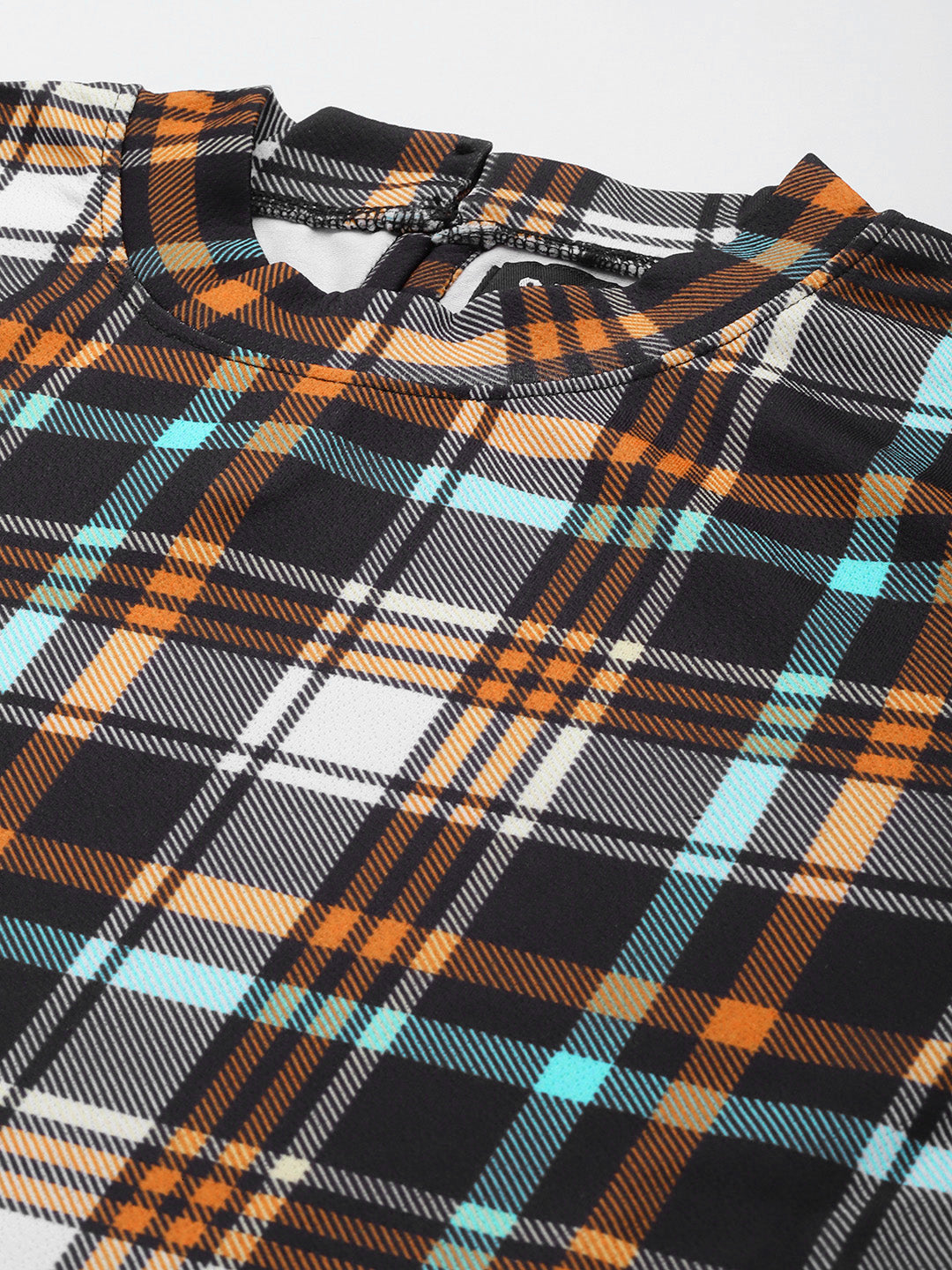 Yellow Check Knit High Neck Tie-Waist Crop Top, in Polyester Aldo fabric, Unlined, Crop Length, Slim Fit, Button Closure, Straight Hemline and features Waist Tie Detail