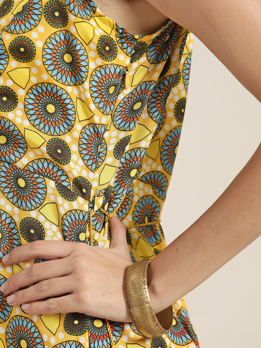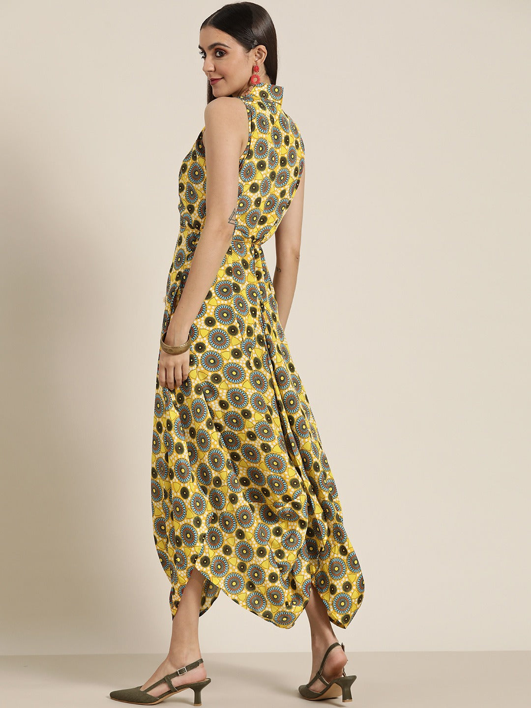 Women Yellow Geometric Shirt Collar Dhoti Dress