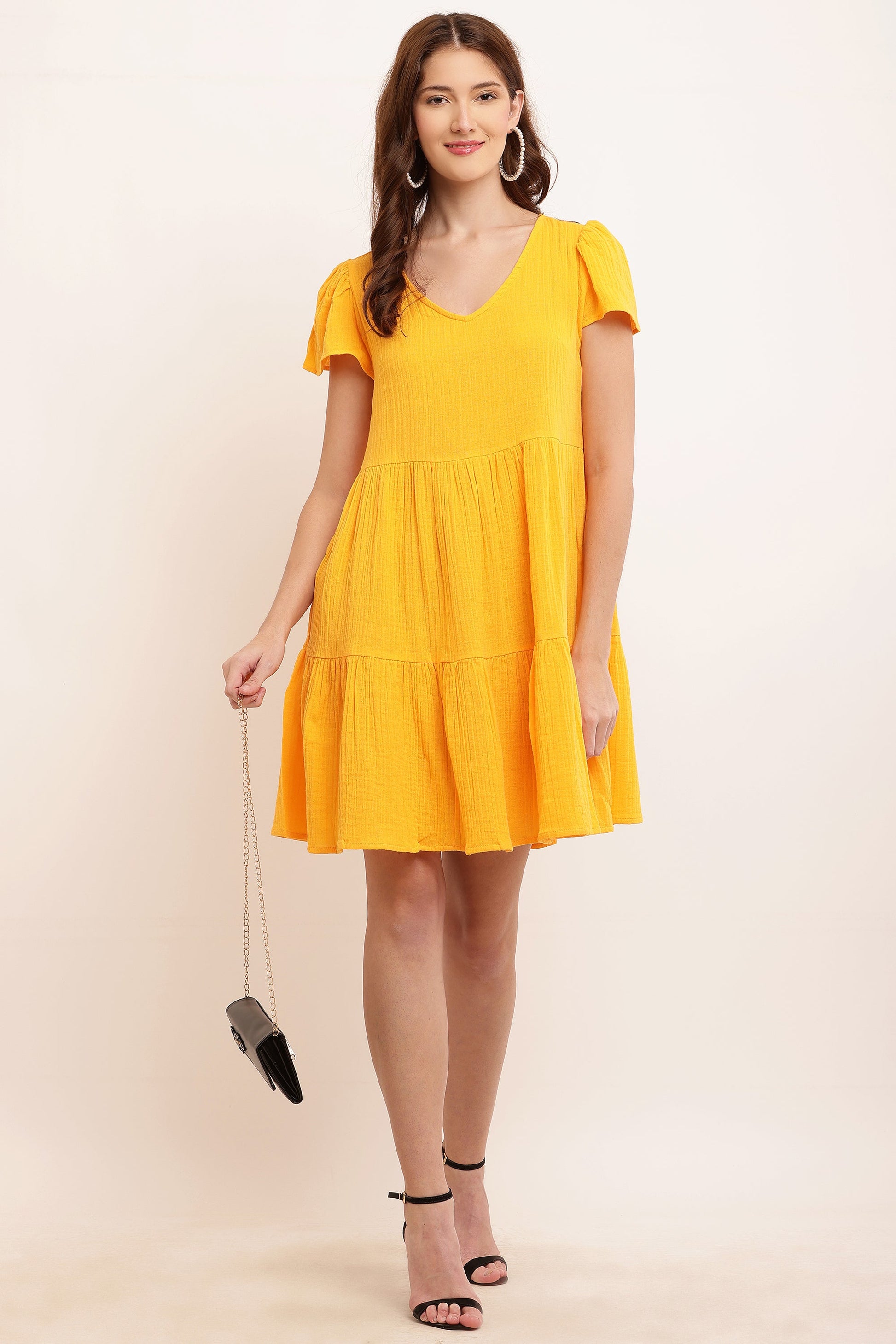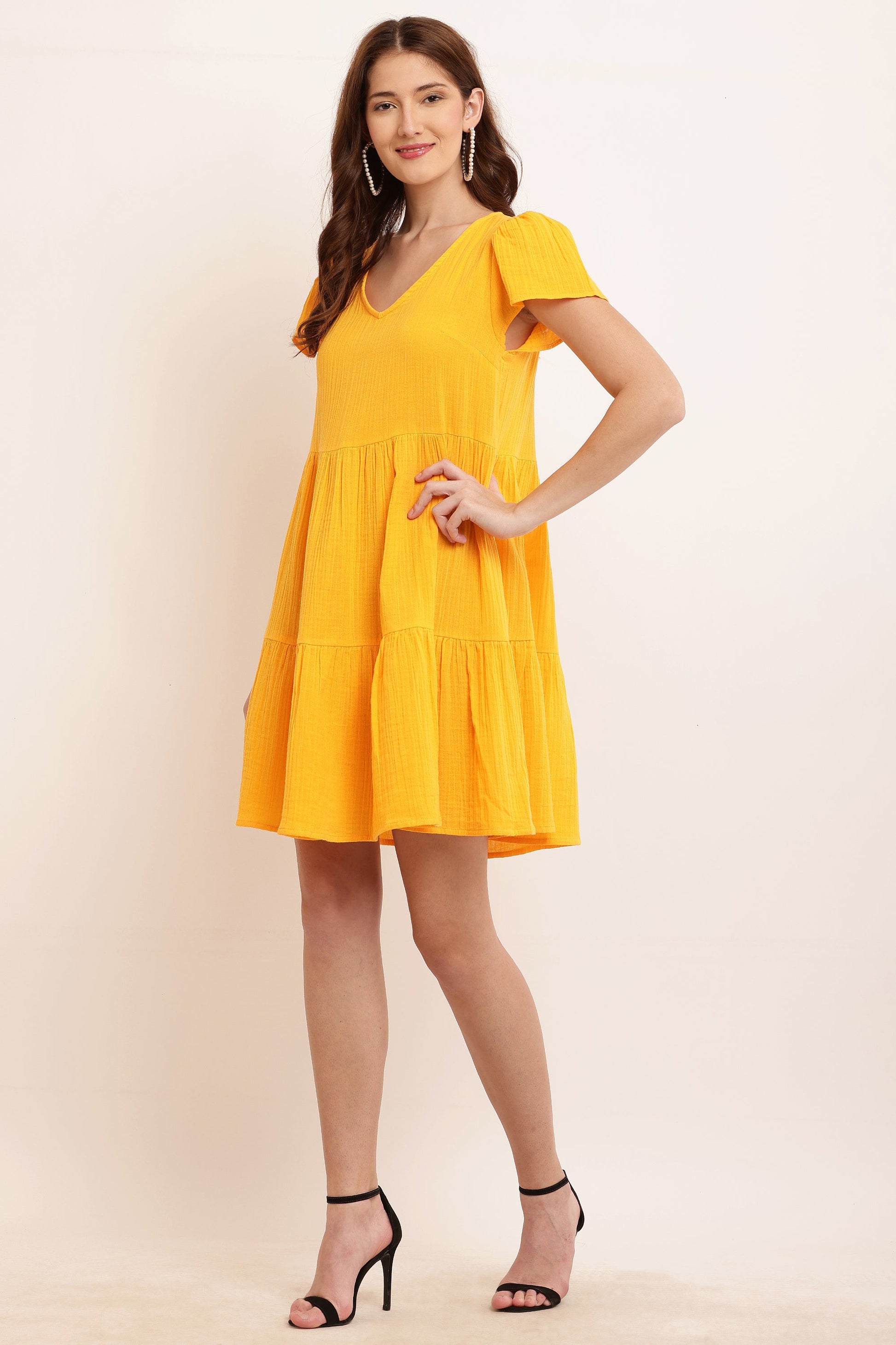 NoBarr Dress will be the summer dress you reach for over and over. This super lightweight and breathable dress features a V-Neckline, short puff sleeves, Knee Length Shift Yellow dress. We’re in love. Style this with boots and simple accessories for an effortlessly chic look. Made of 100% Cotton