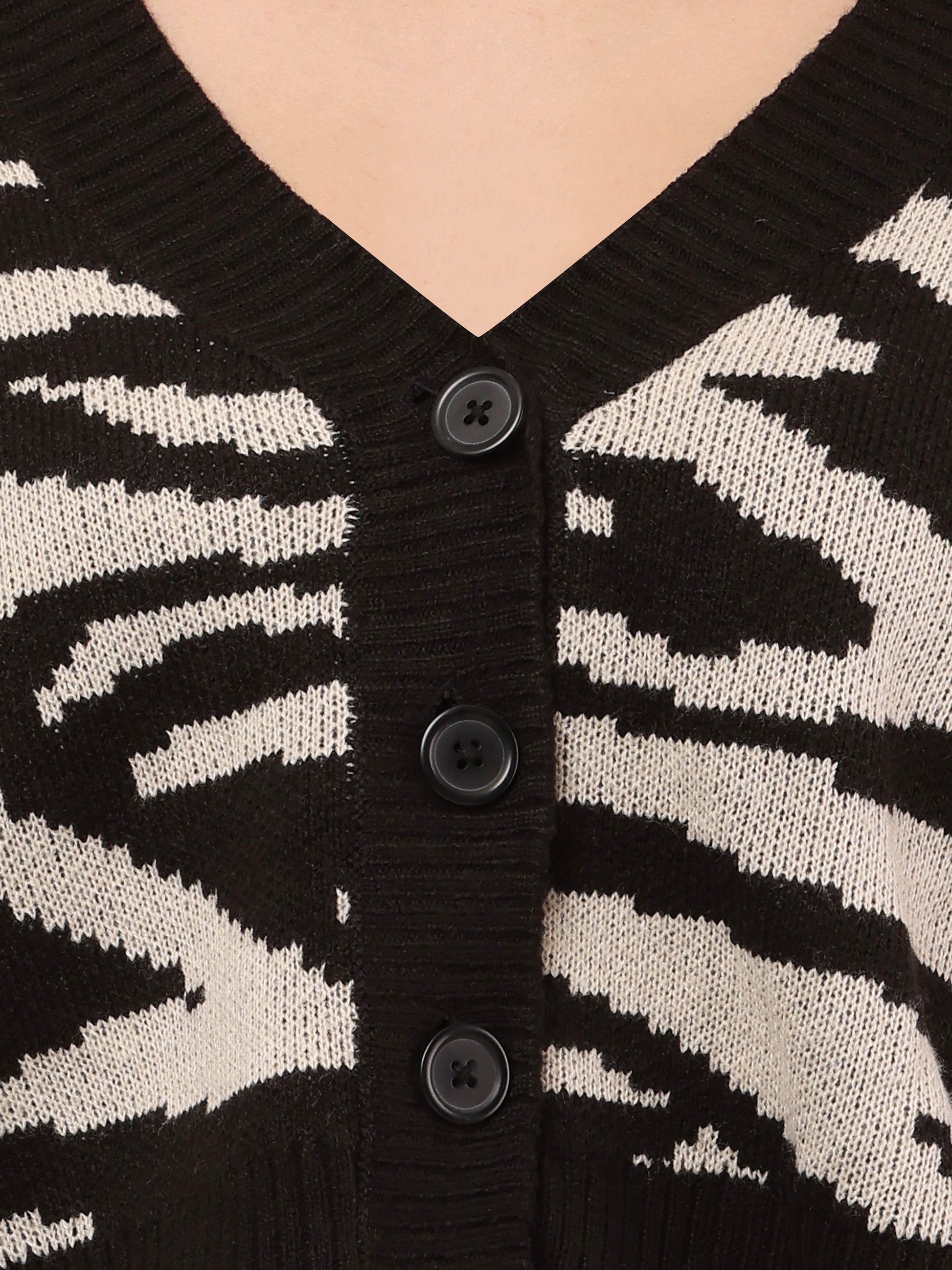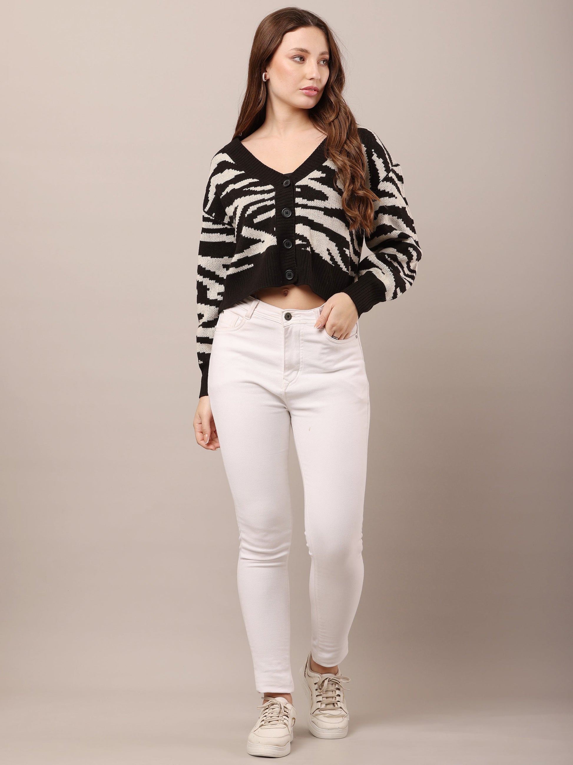 Stand out in style with our Women's Zebra Striped Drop Shoulder Cardigan. The bold zebra print and relaxed drop-shoulder design offer a chic, contemporary look that adds a unique flair to your casual wear.