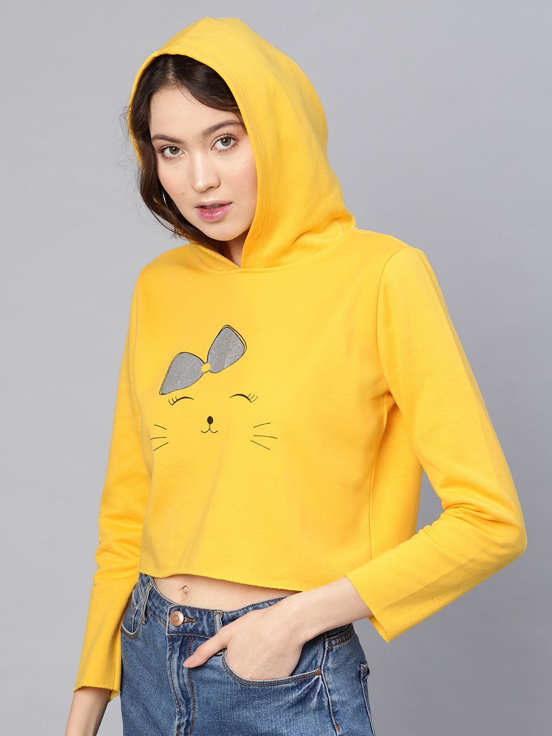 Yellow Kitty Sweatshirt, in Fleece fabric, Unlined, Cropped Length, Comfort Fit, No Closure, Straight Hemline and features Kitty Face Print At Front