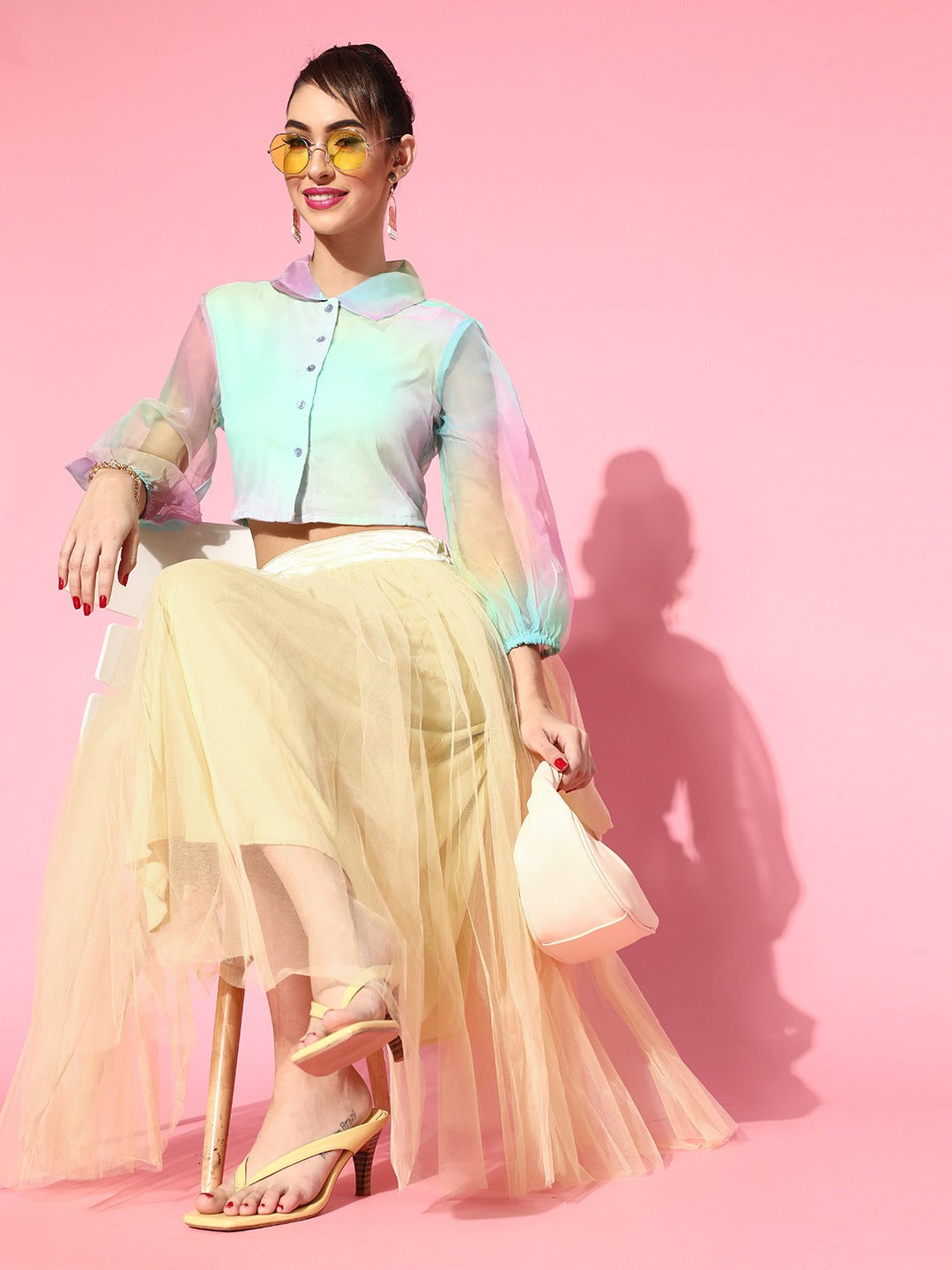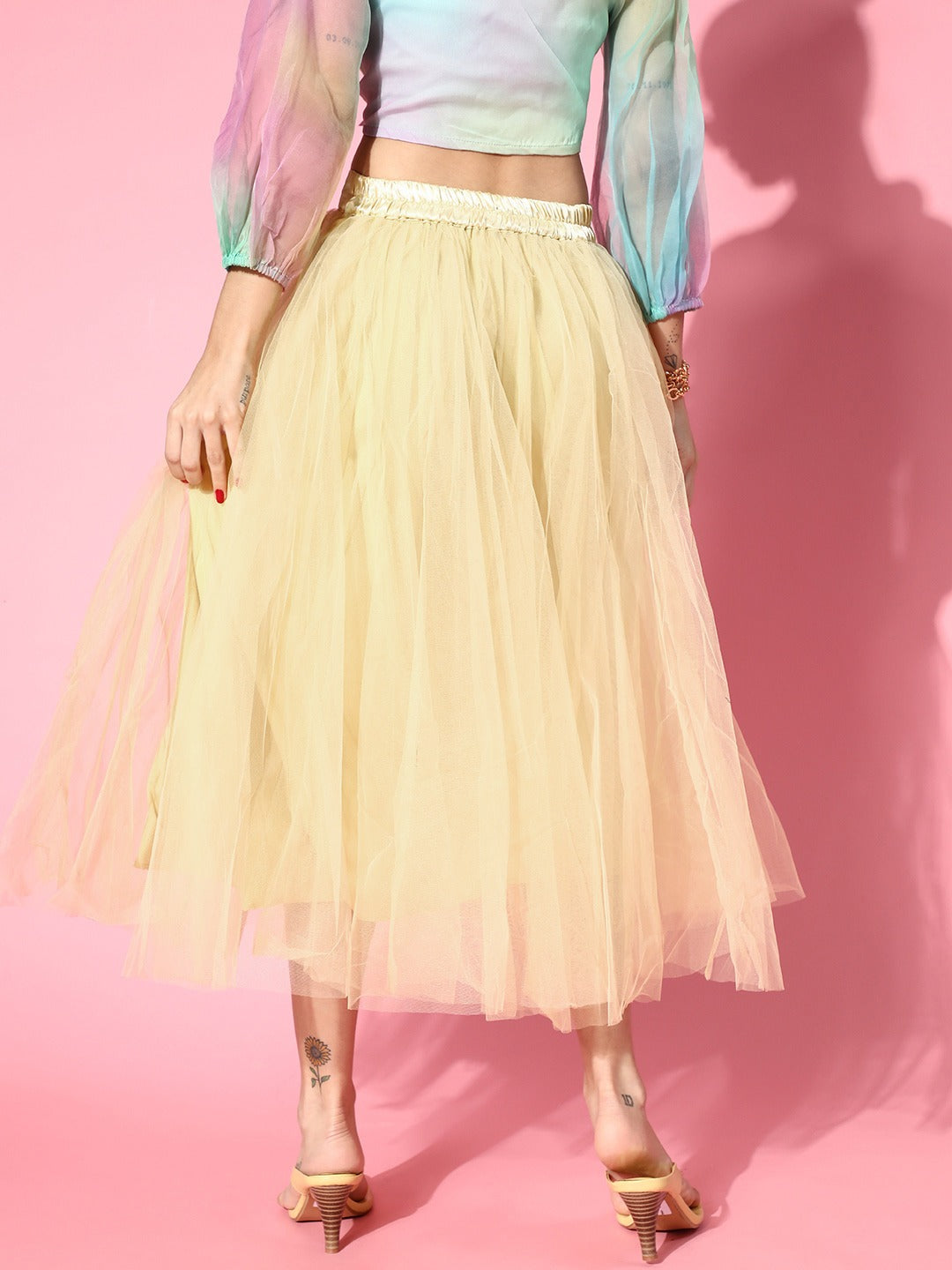 Yellow Plain Tulle Skirt, A Flowing Tulle Skirt with a Gathered Waist and Flared Hem, Perfect for a Whimsical, Feminine Style.